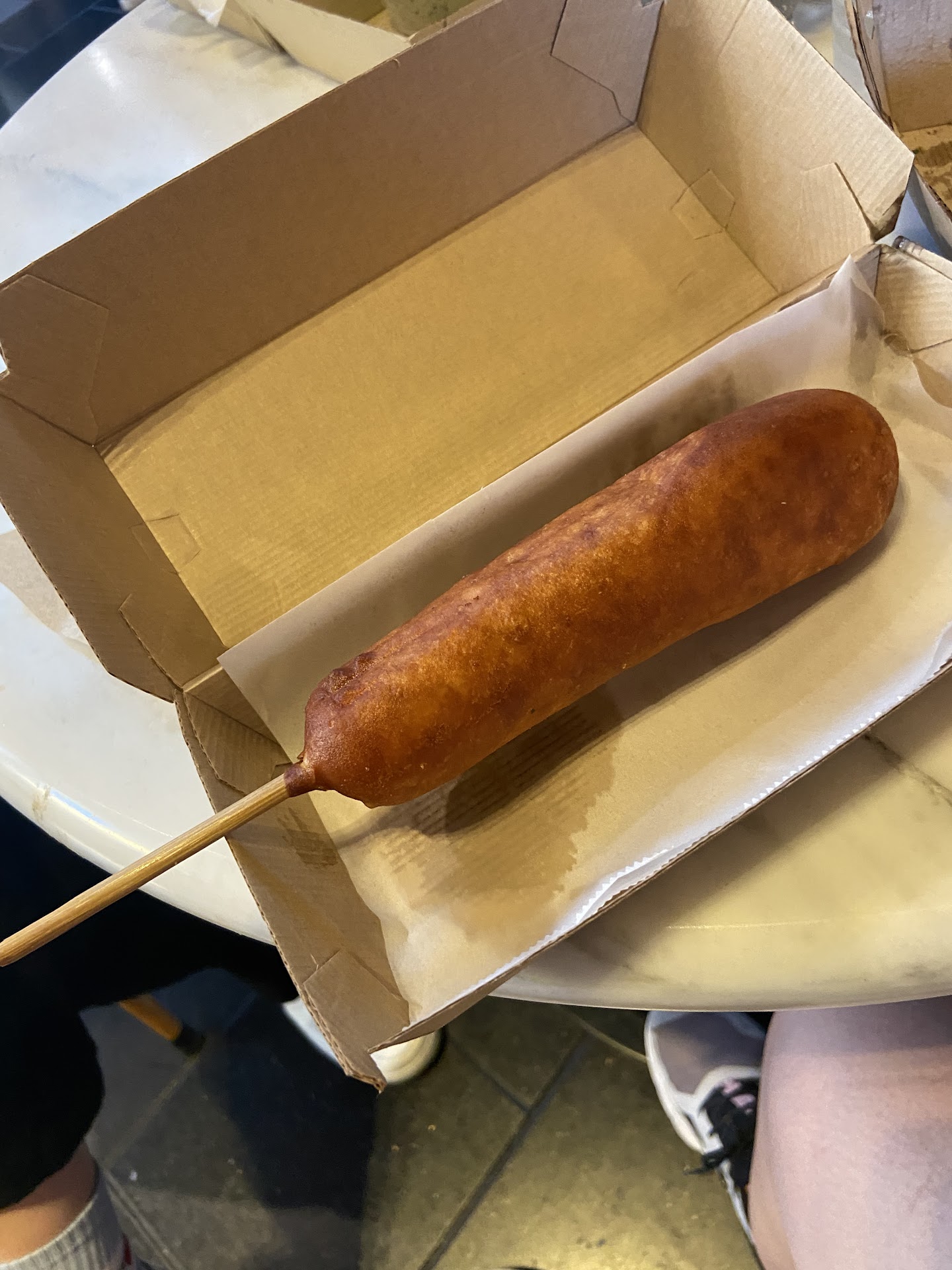 Read moreMy cousins, my sister and I ate at the food court in the mall a while ago and I had a regular corn dog from this place. When I bit into the first corn dog it was only cheese even tho I ordered a regular corn dog (with the hot dog not cheese) so we (my cousin and I) went back and told them that I had ordered a regular corn dog. Shortly after they made me a new corn dog and everything was fine. I personally didn’t like the cheese corn dog (which I had a few bites of thinking that the hot dog was somehow hidden in the cheese) but the regular corn dog was really good! Definitely amazing service for making me a new corn dog after mistakenly giving me...