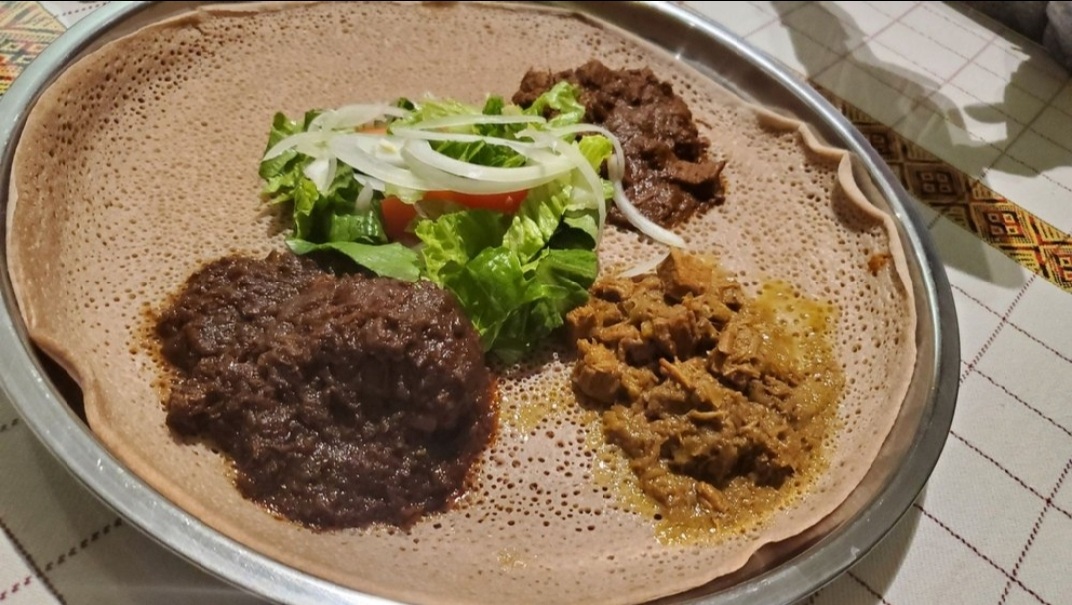 I didn’t try the meat dishes-they looked delectable-aside of my preference-in that they were very special dishes-go to this place w/a few friends or family who is daring or likes Ethiopian-it’s an awesome group experience in a place like this-in sharing!! You’ll love the variety of your friend’s, neighbor’s, or mom in law!