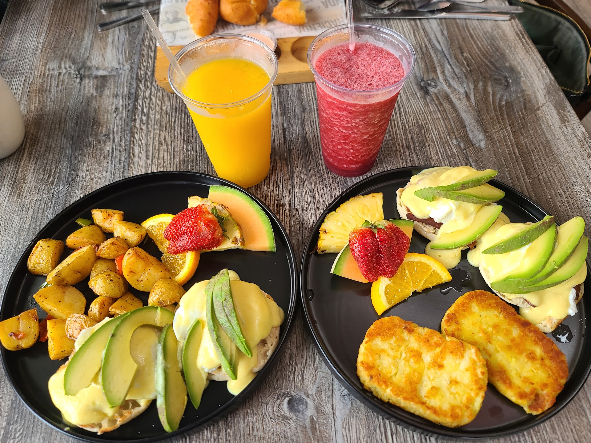 Update: We went back a 2nd time for dinner and were dissapointed. I really expected the BBQ to be outstanding and it was dry and the portions small for the price. So I removed a star for food quality. The service is still super slow but the atmosphere is nice. We went to La Hacienda Parilla for breakfast. I don't know why I have not been here sooner? The atmosphere, food and music are great! I love the decor, the paintings of Latino icons and the modern latin music playing. We ordered a couple of the eggs benedicts - Classico w/ham and the California w/bacon. The third option had carnitas which the waiter brought me a sample to try and I would definitely get the carnitas benedict the next time. They don't have orange juice but many other exotic fruit options such as mango, mora, feijoa, curuba, etc... I had to Google every one of these except mango. They of course have Colombian coffee.