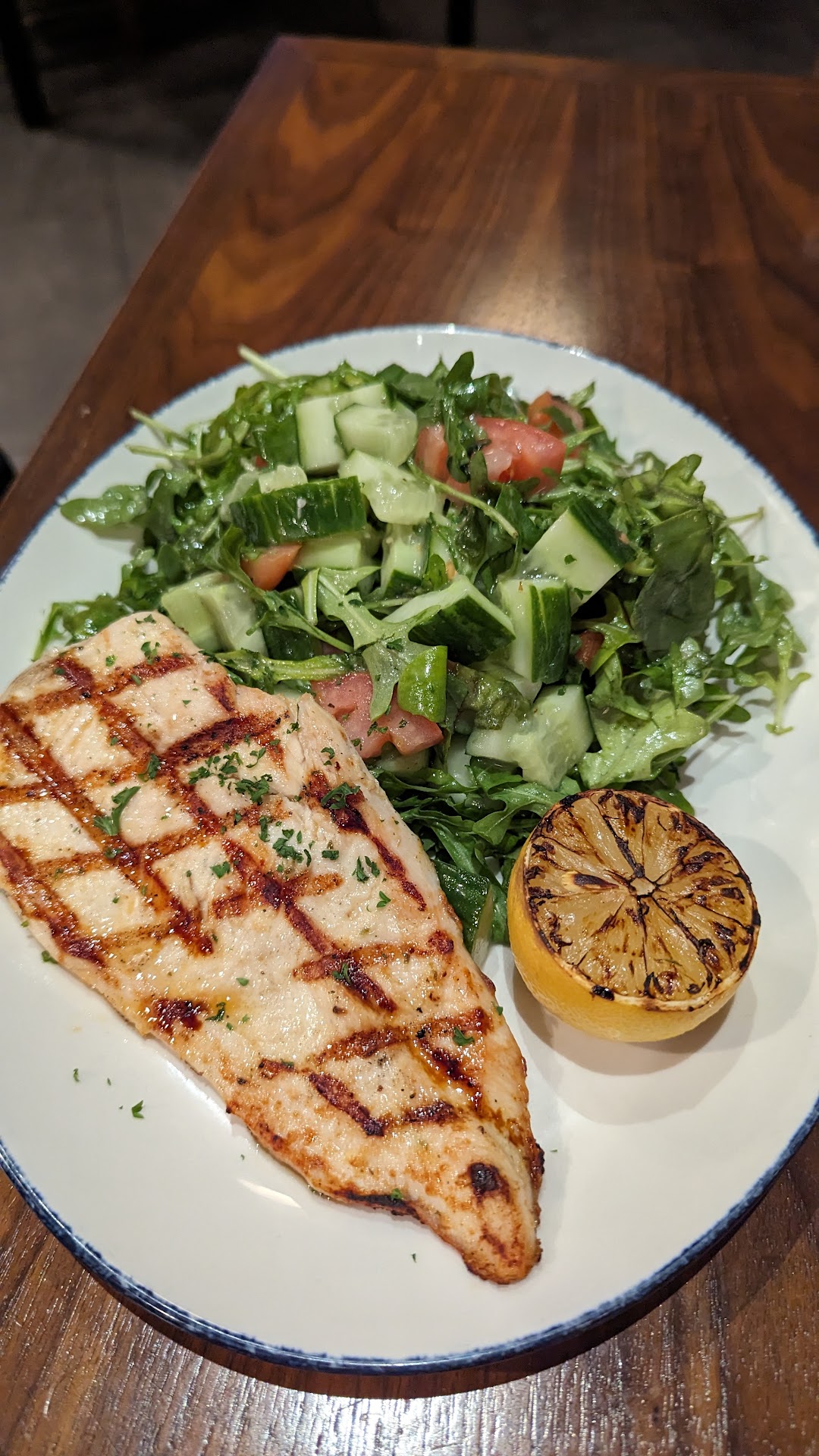 Read moreThe main dining room was closed for 10 people's private event, so maybe my experience wasn't representative, but... The service was glacial (I had to go to the bar to get my menu after 15m of waiting at a table, and then they wouldn't let me order there, so I waited another 10m for them to come by my table to order), my burger was barely rare when I ordered mid rare, and the other burger was cooked medium when they ordered mid rare. The onion rings were greasy, although the sweet potato fries were ok.