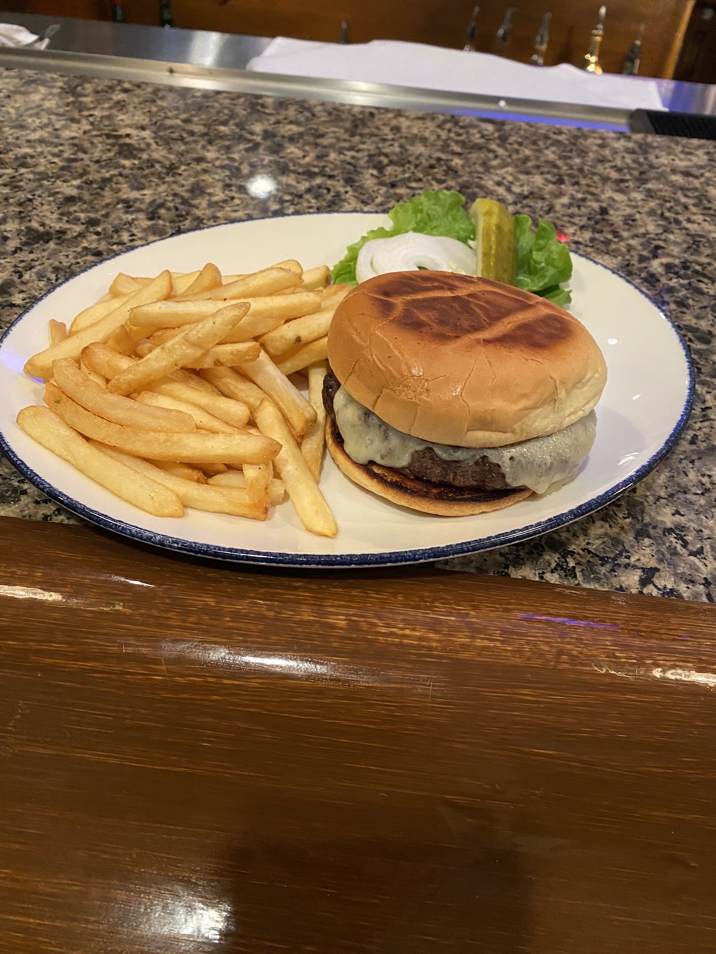 The total was over 22 dollars for a basic burger (white cheddar, patty, bun, no sauce, and fillings all on the side) which came with fries plus a drink. When a guy sat down next to me at the bar and asked about it, he promptly left saying he'd "rather drive for 30 minutes to find another place" than wait 30 for food. He's honestly right, and if I'd known this place would be like this then I wouldn't have even bothered coming.