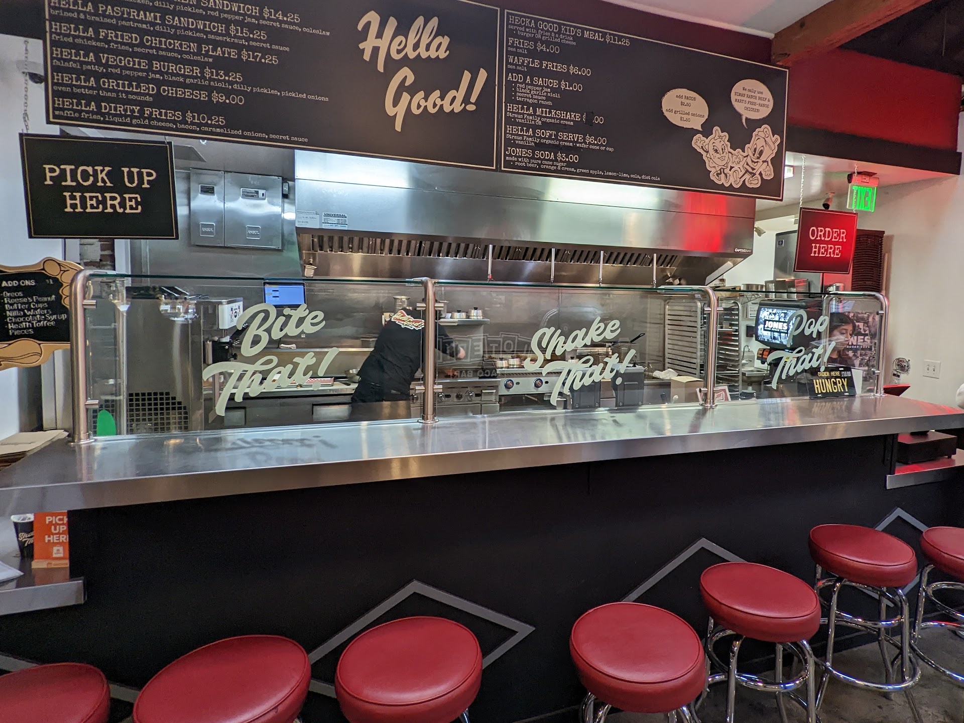 Opting for the Hella Insane Burger, waffle fries, and a Hella Good Strawberry Milkshake, I was treated to a culinary experience beyond imagination. The fact that they craft your order fresh right in front of you is a testament to their commitment to quality.