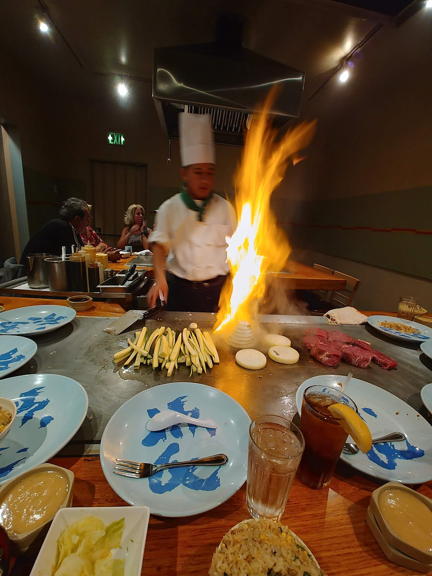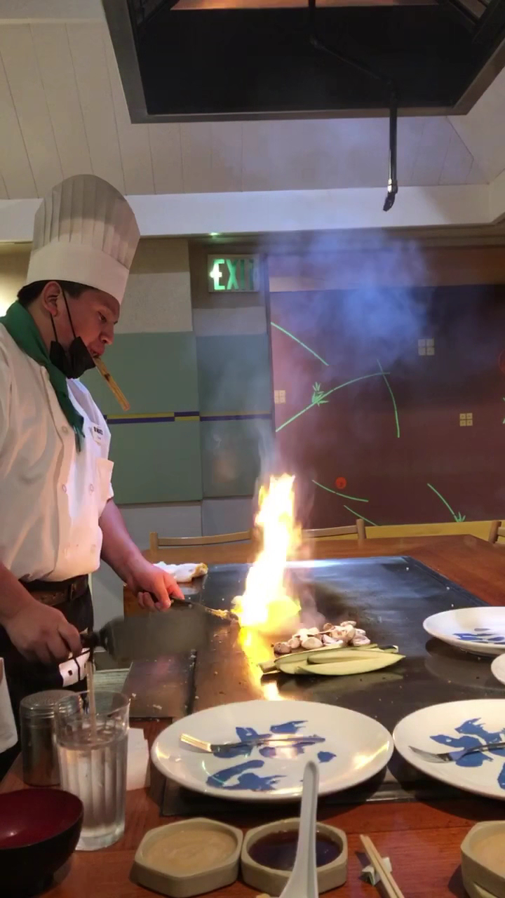 Read moreWe love the food here! So happy it reopened after Covid shut down. Gave 3 stars because it reeks of cigarette smoke when you walk in and the bathrooms-try not to use or breathe through your mouth if you have to. For some reason there is a really bad sewage smell and sometimes it can be smelled in the bar and into the seating area where you eat. Don’t be alarmed if you go in and it seems like someone took a stanky one cos that is not it. Lol. That’s what my kids thought because it is visually clean..it just stinks super bad. The masks do not help at all. Our most recent visit was last week on a Tuesday. They called our group of 4 fairly quickly. Maybe 15 minutes after checking in. Sat at the table and waited for about 5 minutes before they came to take our orders but, no one else was seated yet. Another 5/6 minutes and they brought out our salad, after maybe 10 minutes, brought out soups. Still no one came yet to our table. During this time though of getting salad and soup, two separate groups of 3 came in and were seated elsewhere. I would say maybe 15/20 minutes later, the chef came over and said it was just us as someone else took the extra dishes away. Super cool we got to spread out and not be squished into a corner but, not cool we were waiting at the table for possibly another small group for over an hour. That’s never happened before. Also, portions were way smaller and even though I told them my son and I were sharing and my husband and daughter had their own (regular entree and a child’s) they didn’t give my daughter anything on her plate and gave my son her steak and me the chicken but it was in portions like they were shared. Usually a ton of veggies and maybe had half the amount on 3 plates. Super bummed this last visit...