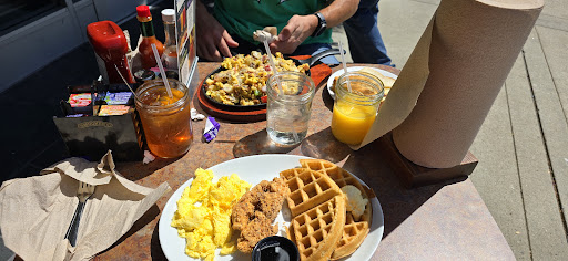Came to Huckleberry's for breakfast. We were seated quickly and asked for our drink orders shortly after we were seated. The staff was very nice and made suggestions for the menu. Overall, I would say that based on our first experience, I'm not sure I would go back. Only because of the lack of flavor in the food. It was fresh, and it looked decent with the presentation, but it just missed the mark a bit with seasoning. We started with the Beignet's. They are very large and light. Everyone liked the texture, and the taste wasn't too sweet. The fruit sauces were also delicious: huckleberry, strawberry, and peach. The fried green tomatoes were very crispy and clean tasting. They reminded me of fried pickles or fried zucchini. I had the chicken and waffles, and the tenders were moist but nothing special. The waffles had a good texture and flavor, and I don't actually think they need that many pieces. I had scrambled eggs with mushrooms added. They were cooked well and not dry. I just wish the breading on the tenders was spicy or at least seasoned well. I used the hot sauce at the table, but it didn't have any heat. The rest of the table liked their food but they just weren't wowed by it. I expected more with the seasoning and hoped for flavor bombs, but we just didn't get it. We appreciated the staff and the relatively quickly served food. The decor is cute as well. I think most people would be happy with...