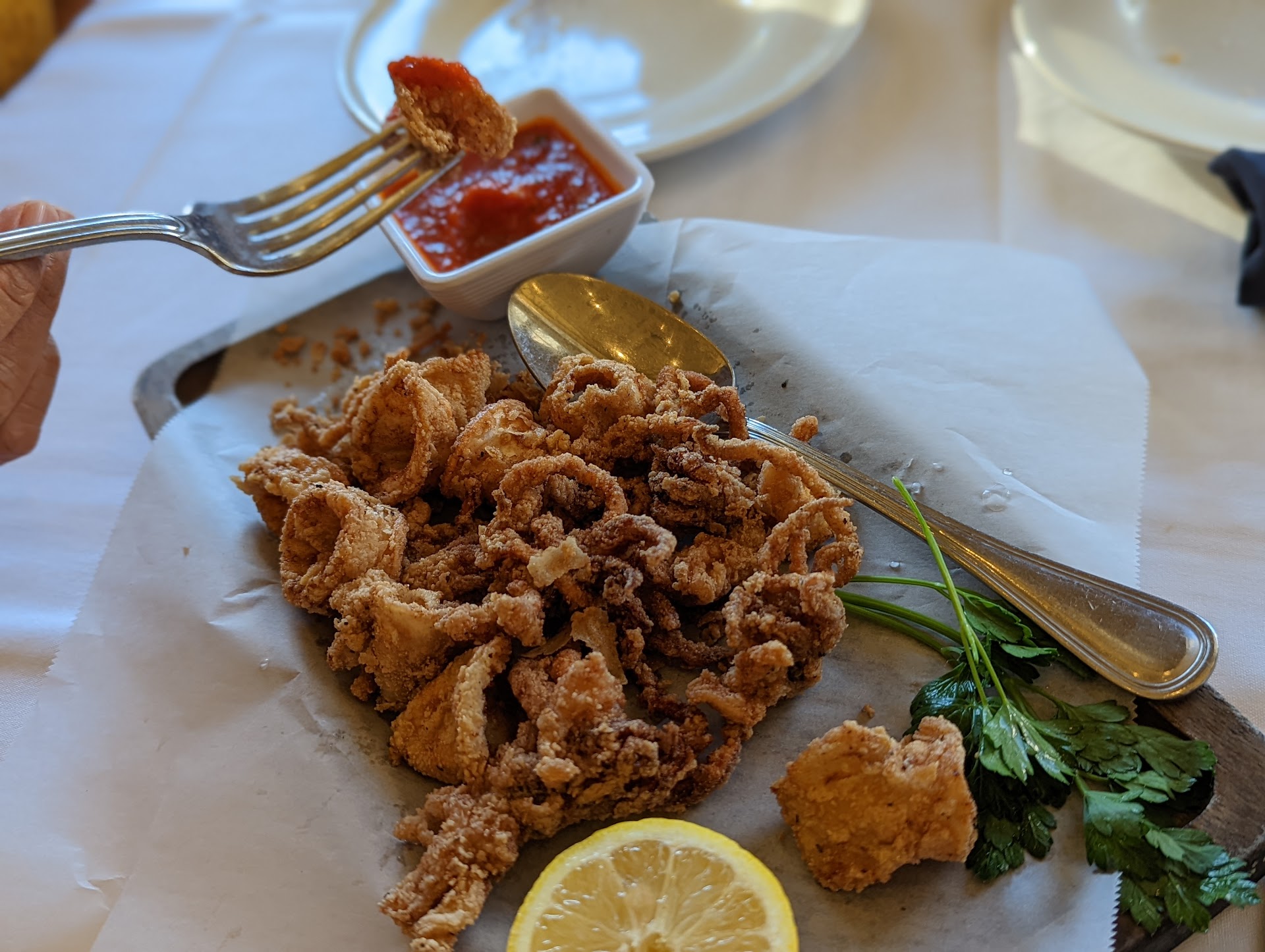 Read moreFirst of all, it is very hard to get a five star out of me. Those are times where everything just works perfectly, and the food is spectacular. This year with everything that's been going on, my family members decided it would be best to give Mom a break this year. No long hours in the kitchen cooking day in and day out preparing our Thanksgiving dinner feast, as well as doing everything else in between. Her cooking is fantastic, and the menu for her Thanksgiving dinners is outstanding. Although Mom's dinner was missed so very much, the restaurant that she chose was very good. It was decided that we would have ourThanksgiving dinner at Il Fornaio's. It was perfect, there was hardly anybody there. The atmosphere was quiet and warm. I love the architecture of the building and the high ceilings of the restaurant. When it came to ordering, I was prepared to have the traditional turkey and gravy mashed potatoes and all, but when I looked at the menu, I saw the seafood linguine. I could not resist, I broke tradition and ordered the seafood linguine. My mind was on the linguine I forgot to take a picture of it. I do not have any regrets. It was so very good. Although a little spicy for my taste, I have become sensitive to spicy hot food, after the first initial bites settled in, I found it to be very good. I loved the rich sauce. The portion size was more than adequate. Price range was a little up there, not something I could do on a regular basis. The staff was very kind and friendly. Some were obviously new, but they were doing their best. I rarely give negative marks for the hospitality crew unless it's a matter of some blatent or incompetent interaction, where they should probably be working for a collections agency and not the customer relations or hospitality industry. It was a very pleasant, enjoyable and relaxing evening. Just a nice no stress evening for all, especially Mom. I will be returning to the restaurant at some point, and I would very much...
