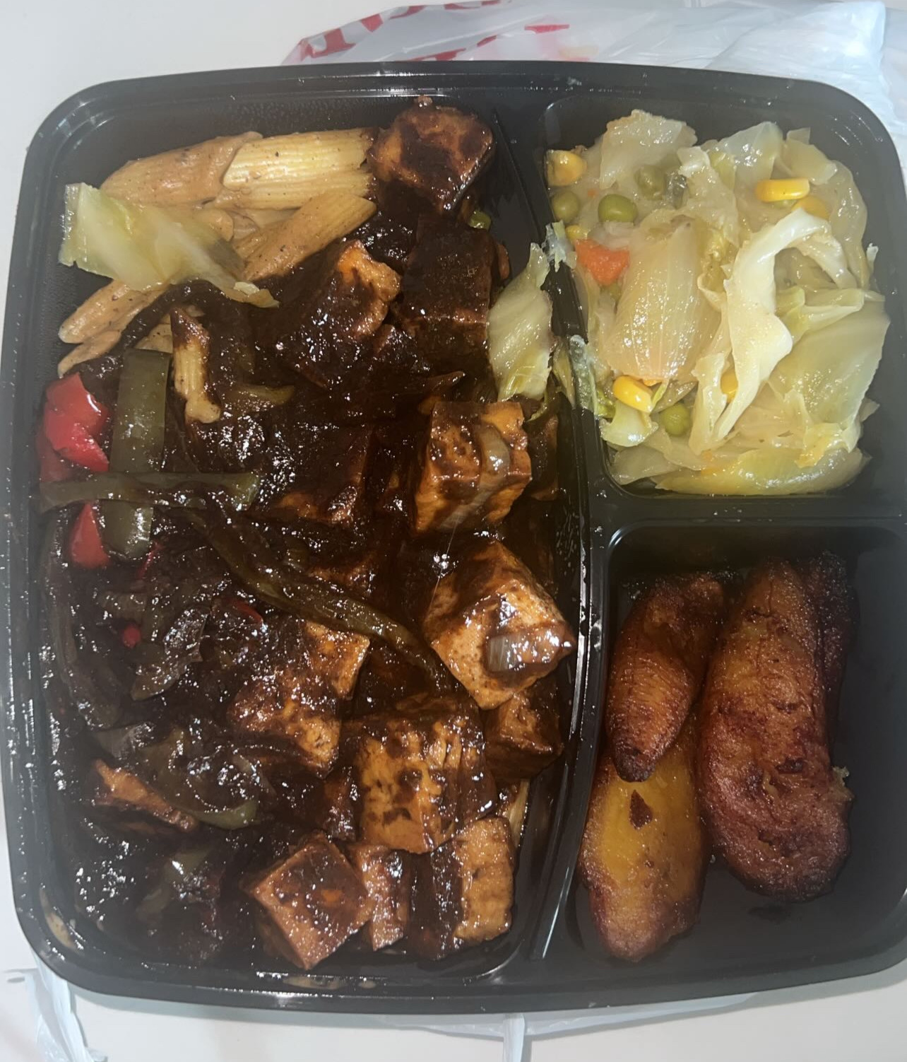 The curry goat is phenomenal. That needed a sentence all in itself. I rarely order curry goat at restaurants because I'm always afraid that it is going to be tough but this goat definitely fell off the bone. The peas and rice is made with Jasmine rice so it is not as heavy and it holds the flavor really well. The cabbage was cooked perfectly and the portion was huge so I was able to eat out of it three times! The quality of the food and the value of the portion hit the spot.