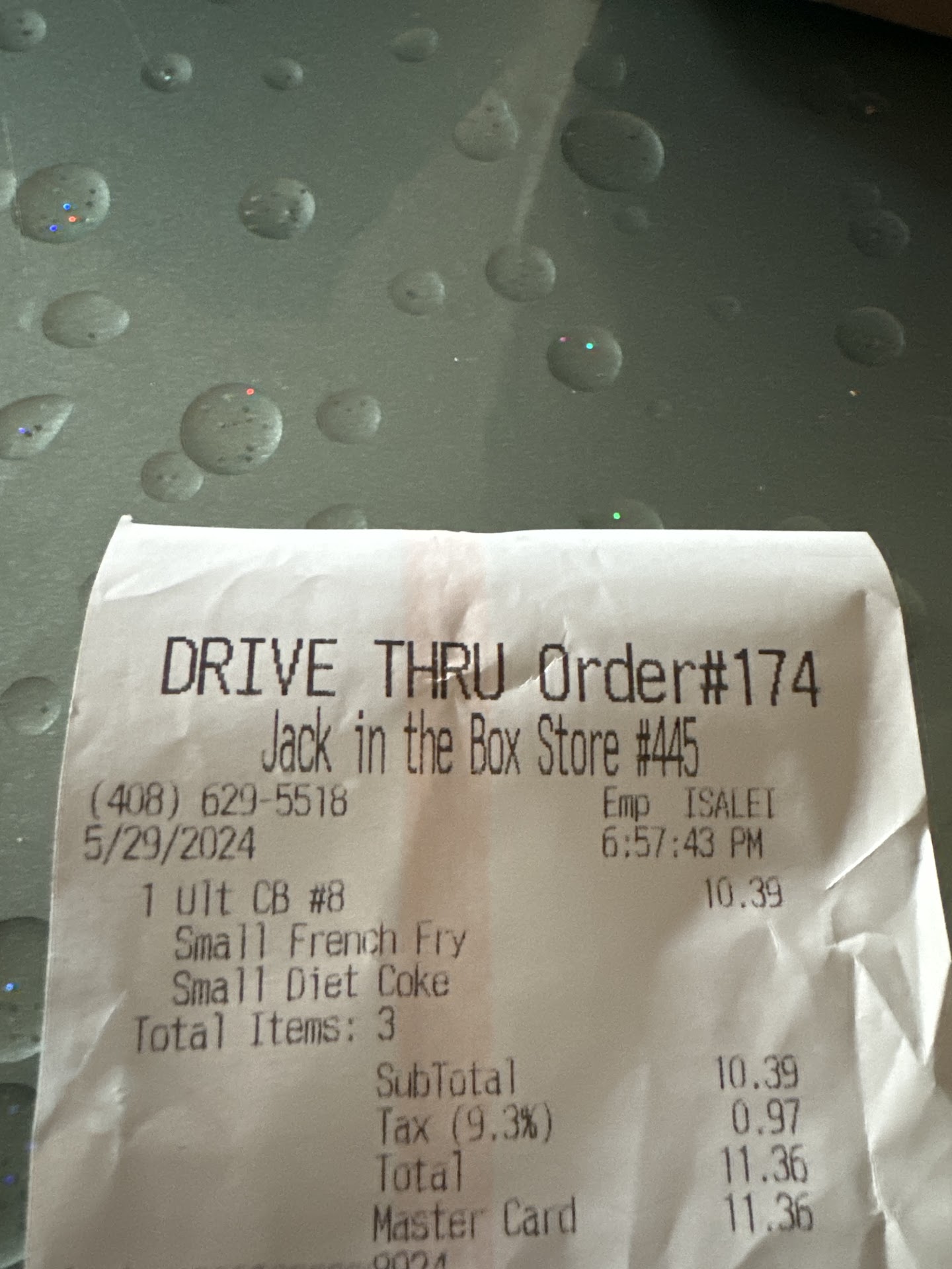 Long story short, I spent the last of my money ordering food at a jack in the box 3.5 hours away. When i realized this, i hit my arm rest a few times. The young girl told me to calm down, which would have been fine, except the way she said it was snippy... i wasn't even talking to her...