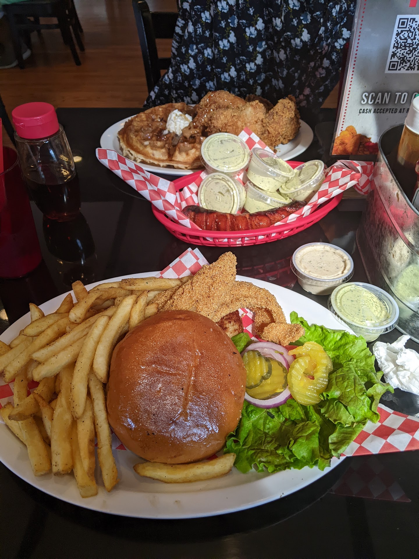 Cons: they charge for sauces, which come in tiny handy little takeout containers, but the QR code order app at the table limits you to only one little choice of sauce. I think if you ask for another they may give you a couple extra, because of this. That way you can try a few others. Honestly, some of these they should sell in bigger containers like chikfila has at the grocery store. Id buy!!