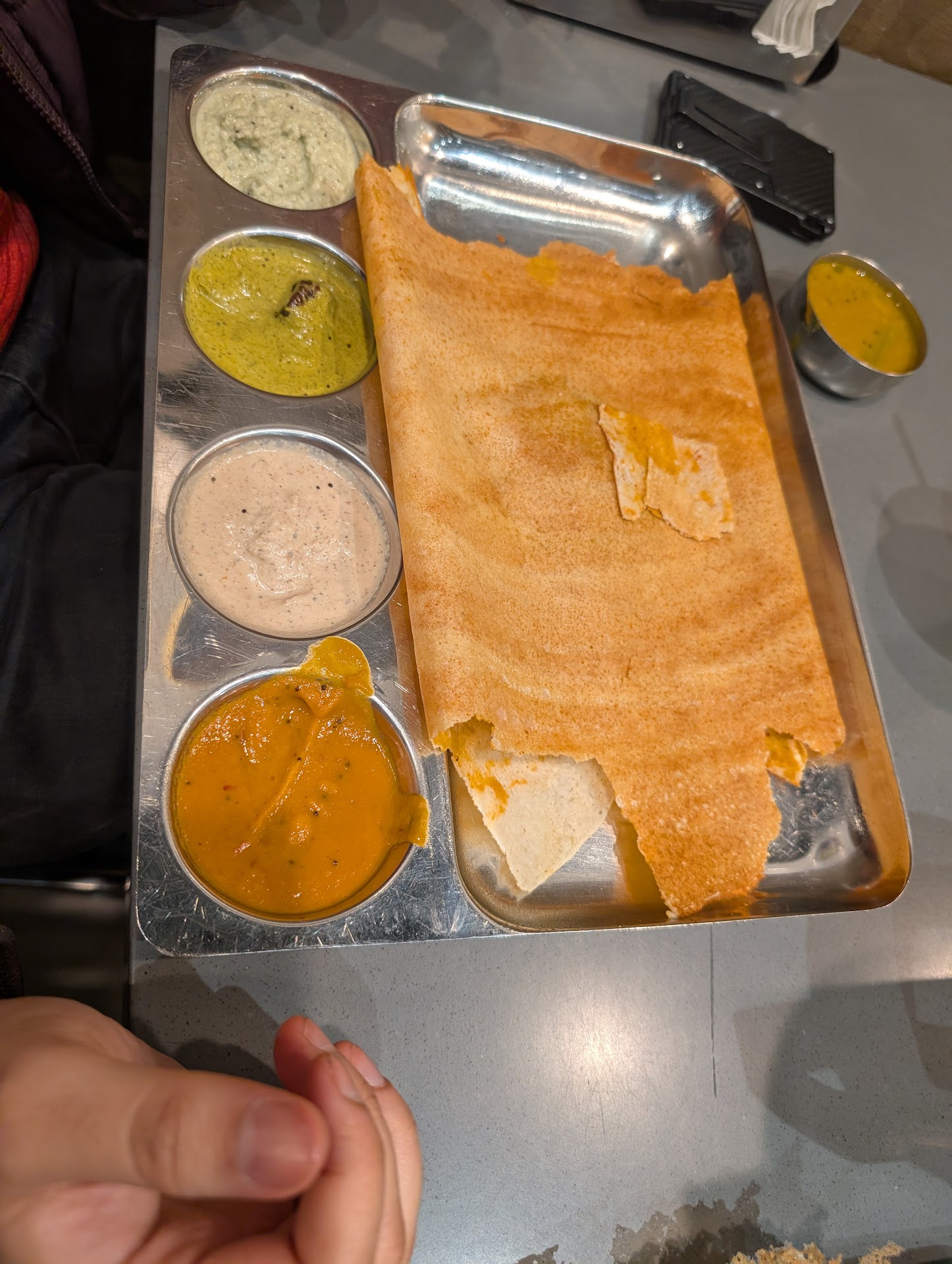Visit #1: â€ïž Butter masala dosa: just superb, loved it. Their white chutney is probably the best I had in the Bay area. đ Paneer 65 was very good, perfectly crispy. In case you didn't know it like me, it is a South Indian paneer pakoda. đ KC special masala dosa: it was just as good but the "KC special" part is not that special in my opinion, it is just some carrot and some masala other than your normal masala dosa. You can try it if you are curious but in short, nothing too special about it. đ Sulaimani tea was good đ Medhu vada was only average or maybe below average because it was not crispy. It was a little soggy.
