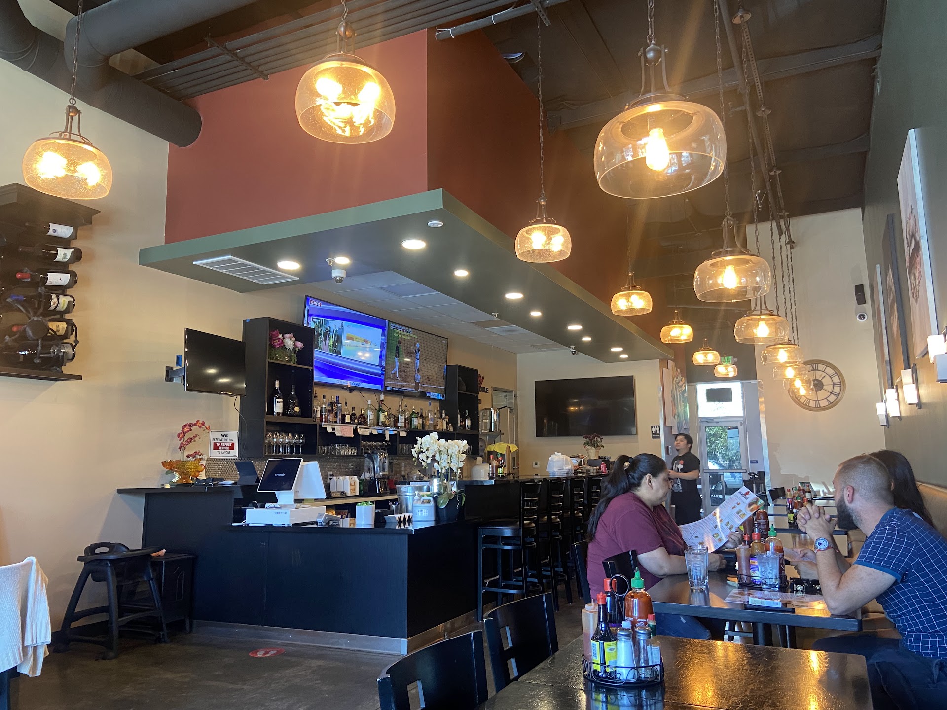 The first thing that struck me was the awesome atmosphere. They have big TVs prominently displaying games, which immediately creates a fun and lively vibe. What truly sets this place apart, though, is how ideal it is for those who need a change of scenery for work. The bar area is equipped with outlets, and they generously share their Wi-Fi. This makes KV Noodle an absolutely fantastic "work from home" alternative – you get a productive environment coupled with great food and service.