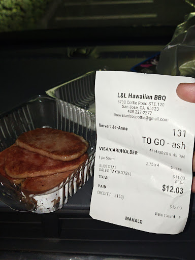 Read moreThis review is regarding this particular location off of Cottle Rd. DO NOT EAT AT THIS LOCATION. I've been buying from L and L everywhere over the past 18 years and this is the only location to ever fail me. I ordered food here with had some melted plastic in the food and had the food replaced. All was well until the food had hair in it and I haven't returned to this location since. Unless the laws regarding food sanitation change and people allow foreign objects like hair and melted plastic they're going to have to follow the rules period and I'm going to find my Island food...