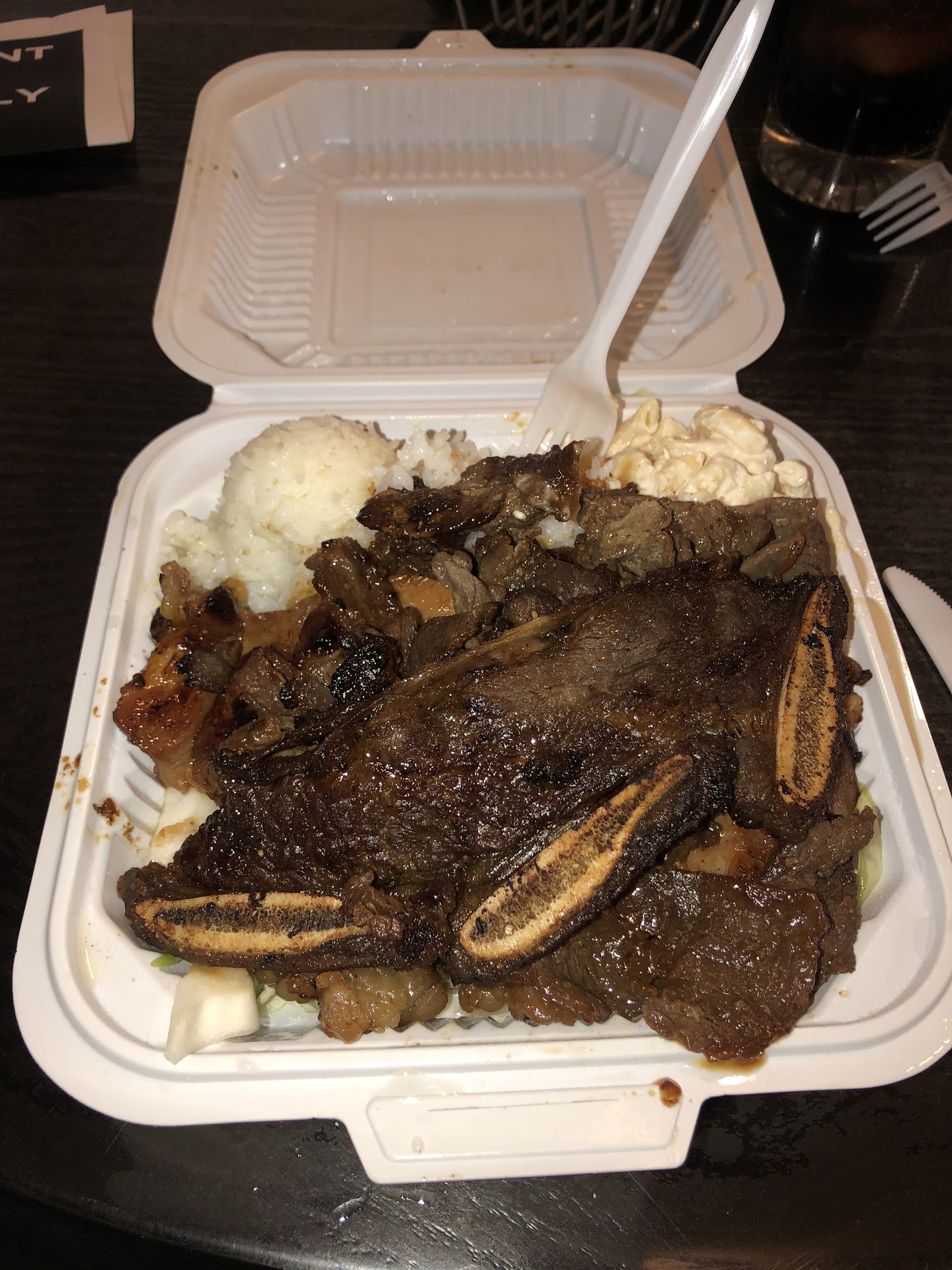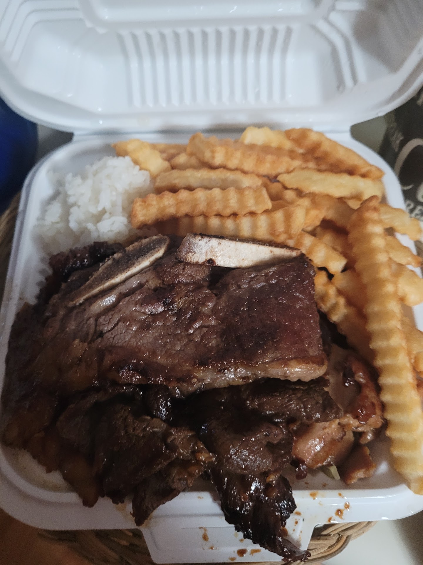 He also let me know if I didn't want the macaroni salad that comes along with the #2 or the white rice, then I could swap with any of the things listed on the whiteboard in the restaurant. So I swapped with French fries (which looked good in the menu picture).
