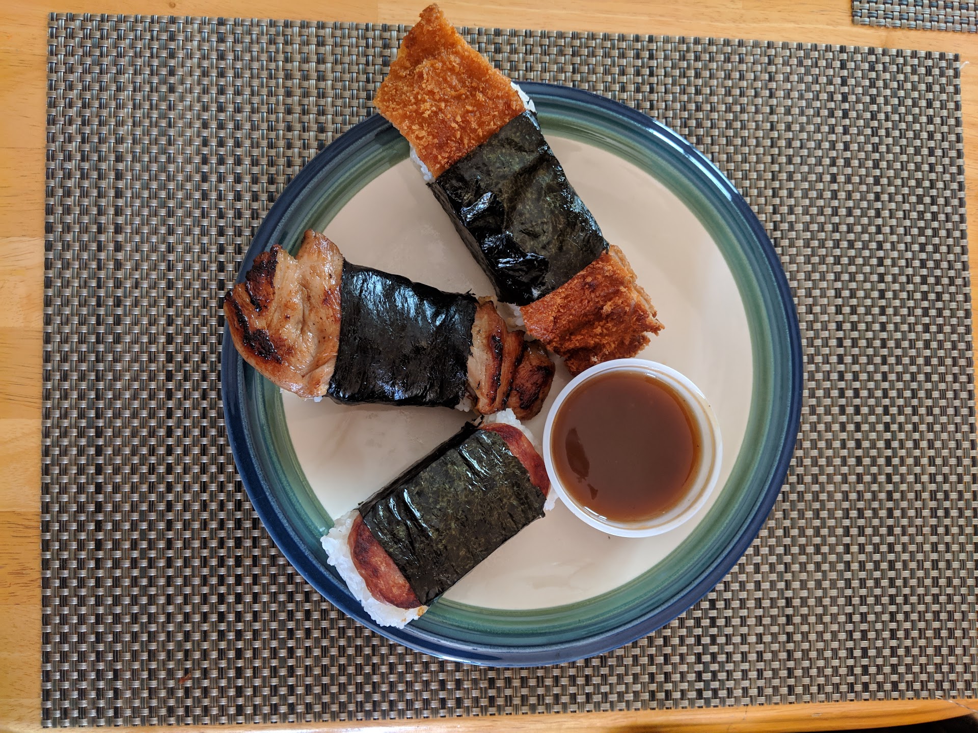 Read moreQuick and relatively cheap, that's what keeps people coming back!!! Hawaiian food, in general, isn't known as health food but you can find some options here. I ordered the Musubi Trio. The Spam Musubi and Grilled Chicken Musubi were fairly healthy. The Katsu Chicken Musubi, not so much. To be honest, it wasn't my favorite either. The chicken was pounded so thin it was barely recognizable. The crunchy exterior was delicious but I would like a little more chicken. $8 for the Trio and they are so big that you can easily cut them in half, share between two people or save half for later. Comes with a small container of Katsu dipping sauce that their website describes as "piquant", I'd say it's sweet with a little vinegar tang. #Hawaiian #Cheap #Fast...