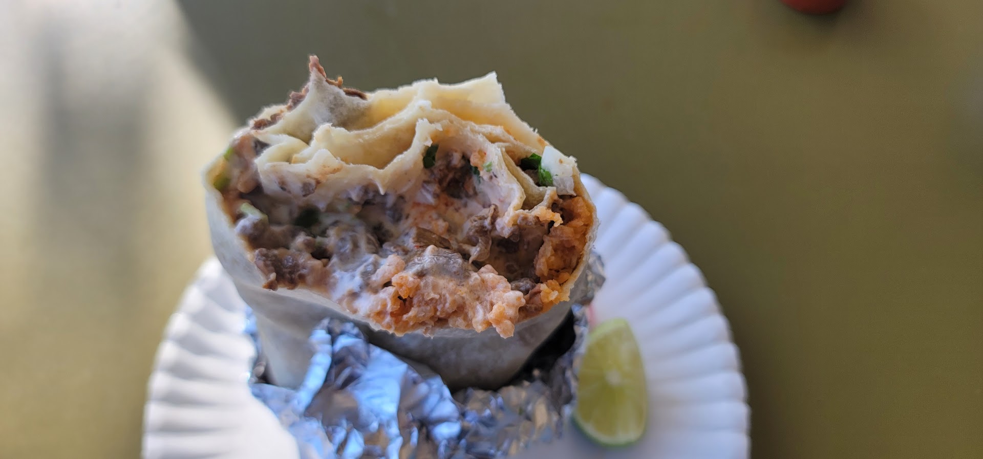 I can taste every single filling put inside. Meat has great flavor. Rice, sour cream, salsa, cilantro, onions, everything is great. I tried their tacos too and ceviche and was really surprised how good they are too.
