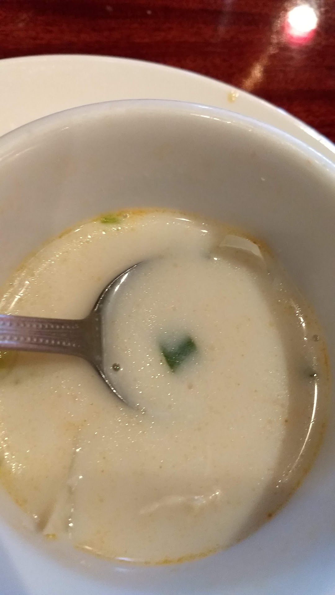 *The tom ka was much sweeter than anywhere else I've had it. It wasn't bad, it was just different. It was decent flavor once we adjusted to the sweetness. The veggies in it were cooked just the right amount to still have a bit of bite, but not require effort to eat. *The pad thais were different. One was thai hot and with shrimp. The texture of the noodles was decent in that one and the heat covered the lack of flavor. *The other pad thai was medium spicy and with tofu. We did have to request that the tofu was fried as they said they normally serve soft tofu in it, so be aware of that if you're a crispier tofu fan. The heat level was on par with what I'd consider mild and the veggies were again cooked just right. The noodles, however, were over soft and soggy feeling and didn't have any bite to them, but worst of all, they didn't have much flavor to them. The thai iced tea was a bit thinner/waterier than most thai tea and it was definitely not at the top of my favorite cups of thai tea list, but wasn't horrible, however for $4.50 for a tapered and therefor smaller than it appears container or $5.50 without ice, its taste was not in line with its price.