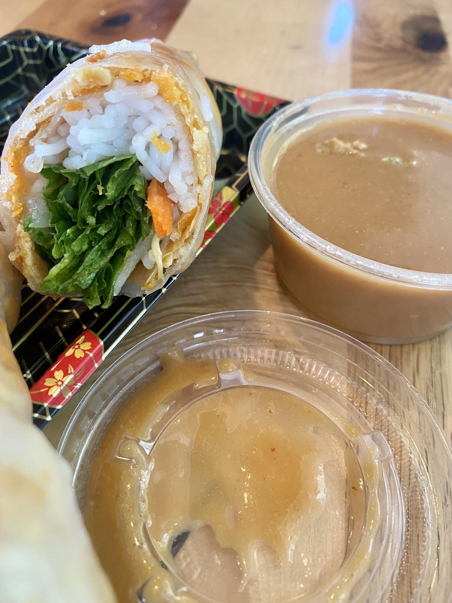 I ordered:- Fresh vegan spring rolls- Cured pork sandwich (cured pork, house pickle, onion, jalapeño, cilantro, salt & pepper, soy sauce, and house mayonnaise)- Grilled pork sandwich (grilled pork, house pickle, onion, jalapeño, cilantro, salt & pepper, soy sauce, and house mayonnaise)- Asian salad bowl with portobello mushroom- cookie
