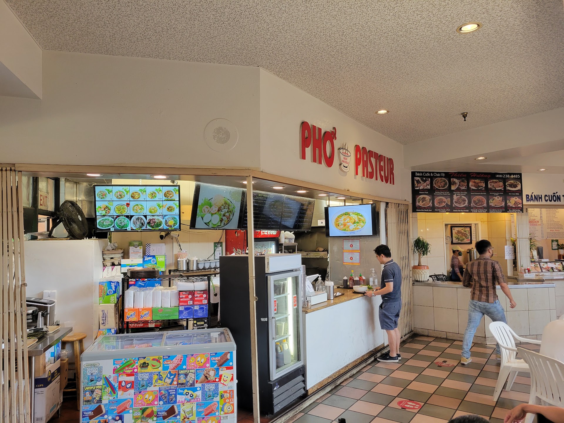 A fun place to fix a Vietnamese food craving. I wanted a banh xeo (crispy crepe with shrimp, pork slices, bean sprouts) wrap with lettuce, mint and other green produce. Quan Hue has a good one along with other yummy favorites from the middle part of Viet Nam, Hue. It came with a tea and it is good to share because it was pretty big. Also got a combination banh cuon from a place across, there are many choice combinations and always tasty. The bbq ribs with broken rice was also a hit. Next time we'll probably try porridge from there as well as a bo ne phu yen (grilled steak with egg, produce and banh mi bread.) There are tables in the middle of a court yard. Place your order at each station and wait for a bell to signal and pick up your tray. Someone also clears your table after you are done. It can get busy at lunch time, the parking also can get busy on...