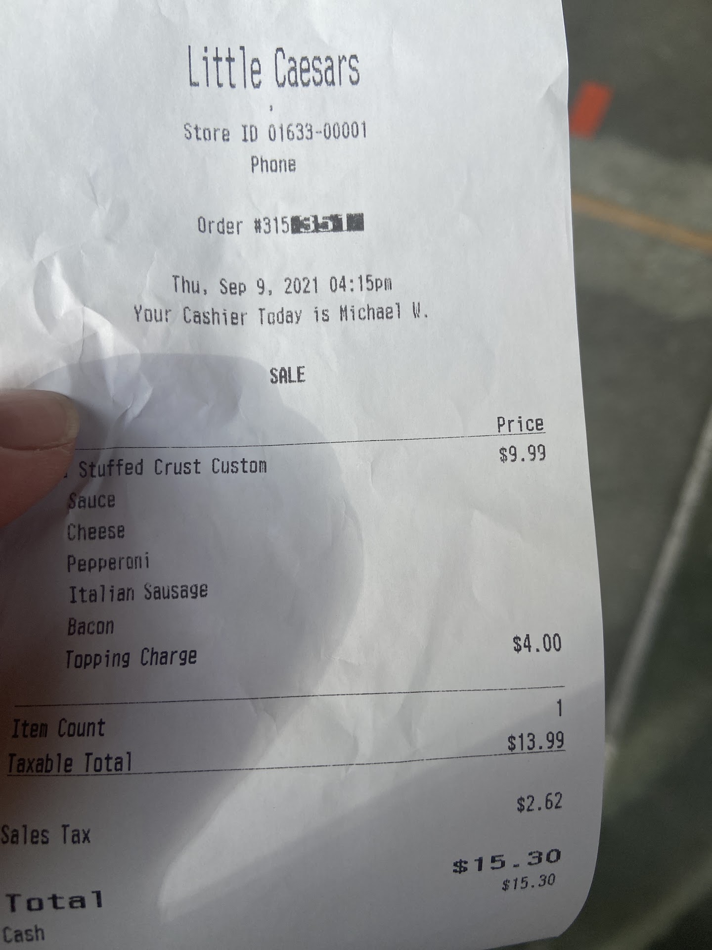 Read moreHello. I appreciate your guyz hard work but 2 weeks ago I ordered a pepperoni pizza 🍕with extra cheese 🧀and extra sauce from little Caesars Monterey road sj ca and it was like eating a carboard box 📦. And i even got a headache after too. And they forgot the pepperoni😭 So I order same thing here in Monterey Ca and this is stress free amazing tasty pizza❤❤