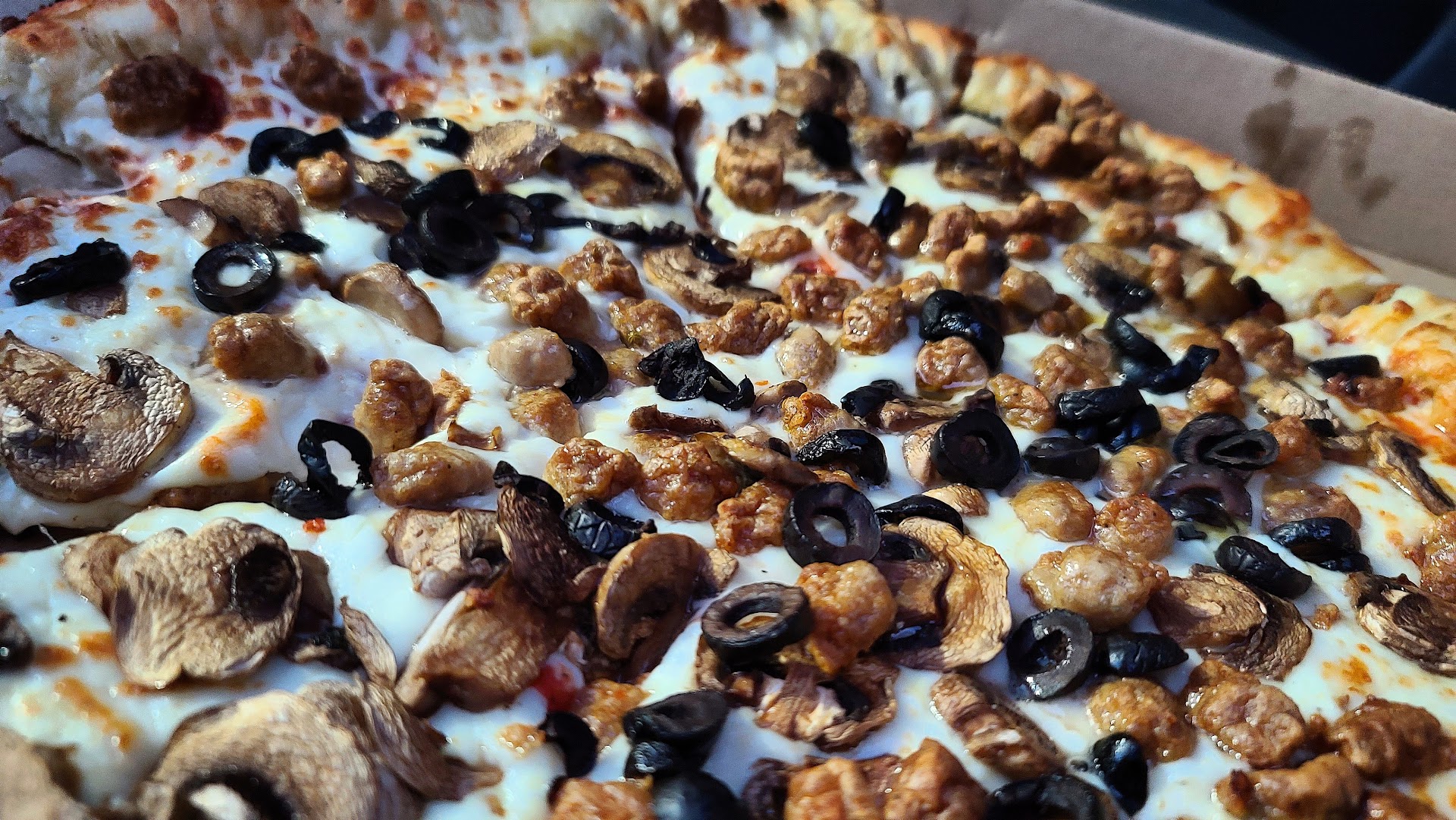 The only good thing was that the food was fresh. I ordered online but arrived a few minutes earlier than the time frame given to me on the app. We felt unsafe while we were there because the parking lot was very dark. Even if we had not gotten there early we still would not have felt safe. There was a homeless gentleman that was obviously intoxicated standing right outside the door. He was approaching everyone in a hostile way. He finally left but we still felt unsafe because it was so dark we couldn'tsee where he had went. On another note, I was parked in front and could see inside and there was always more customers in the building than what was posted on the door for Covid restrictions. When I went in there was a guy that also ordered online trying to get his food out of the portal. But it was all stuffed so tightly that when he pulled out the pizza box, his box of chicken wings fell on the floor. Then when I went to get my food out, I had to pry my pizza boxes out cause they were all stuffed too tightly into one portal. One of my pizzas almost fell on the floor just like the guys chicken wings. I think the problem is that on the employee side of the portal, they have more room to slide the items into it, but on the customer side, there is less room to take the stuff out because of the portal door that lifts up. Just was not a good experience this...