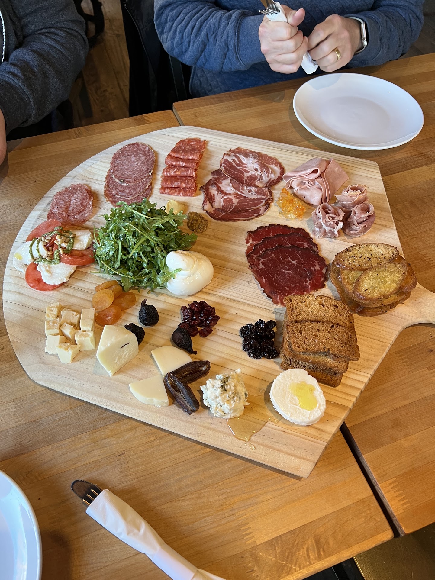 There’s a small but mighty selection selection of pizza and sandwiches. I ordered and loved the Parma Johnny and our table shared the Grande Tavola which is a charcuterie board that we shared among the 6 of us.