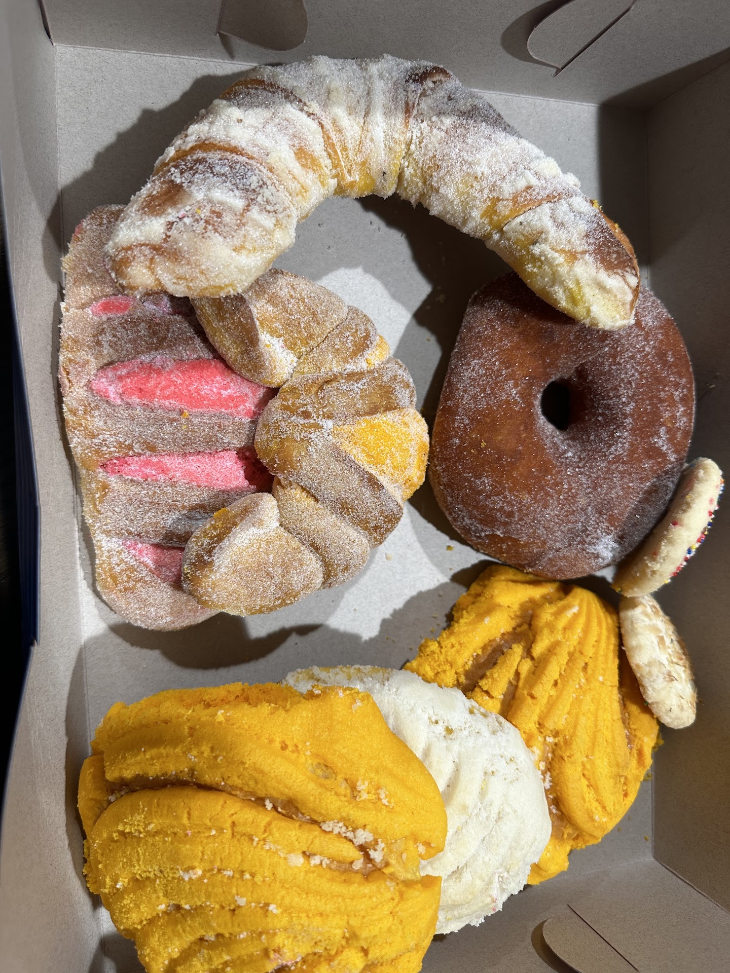 ย ย ย Read moreWhen visiting my sisters, we have to always stop for bread when we visit to bring back to the family! We enjoy all the concha/ cuernitos variety. When you order a good amount, you can ask for a box or pay extra. Today I paid extra for a small box to be able to give to my brother vs a bag. For our box, my hubby had the brilliant idea to cut up so we can try all! True bread buffet!!!! The line starts to the right or the honor system of who...