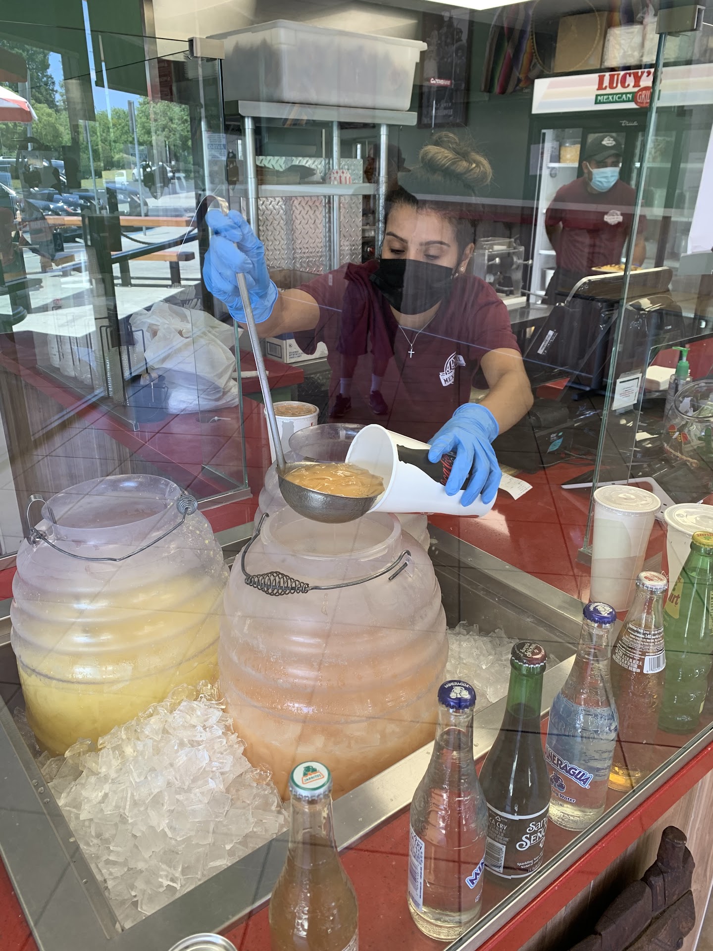 I tried Lucy’s for the first time today. I stuck with the basics. Al Pastore burrito with rice, pico de gallo and extra onions inside. It was 13 bucks. There was an added 4% because you bought it here charge which I don’t really like just put the cost of the item on the board and quit trying to hide from it anyway that’s just me the salsas were really good. There were four different kinds to kind of mild and creamy one was medium and one was very hot. The chips looked and tasted like homemade very good just enough salt. The burrito itself was outstanding! Cooked through nice and hot rice was nice and warm. Tortilla was delicious just a very very good burrito. I’ll be going back for sure, there’s a whole bunch of stuff on the menu. A small seating area with about seven tables. There were a few people inside super clean! Everything was clean glass floors door the work area in the back looks super clean try it out.