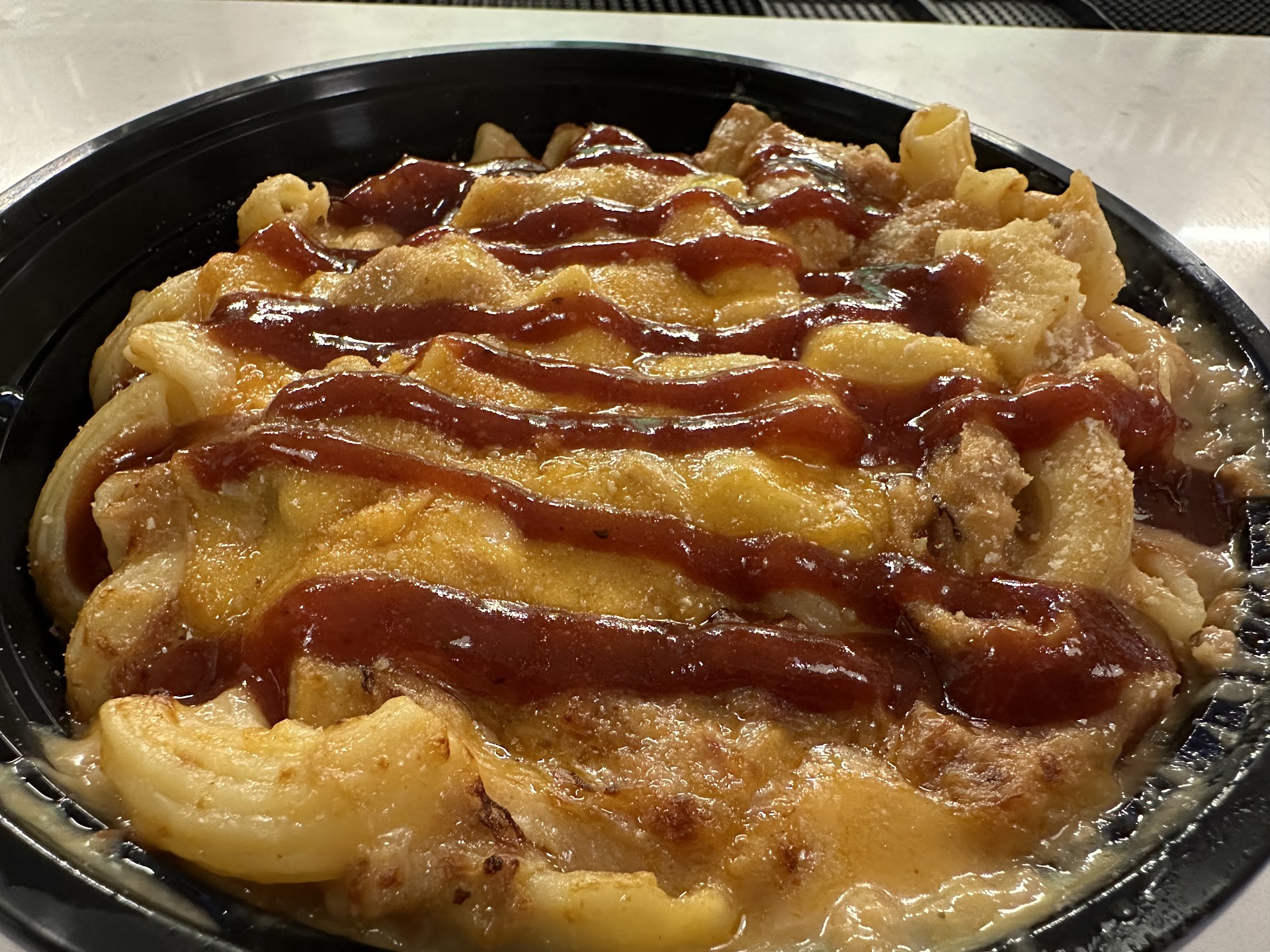 The food was actually tasty. It had large noodles. The pulled pork sandwich had both good flavor and good texture. I didn’t sense a smoked smell from it. Good roux and not too thick or runny. It’s a decent portion. I didn’t finish it.