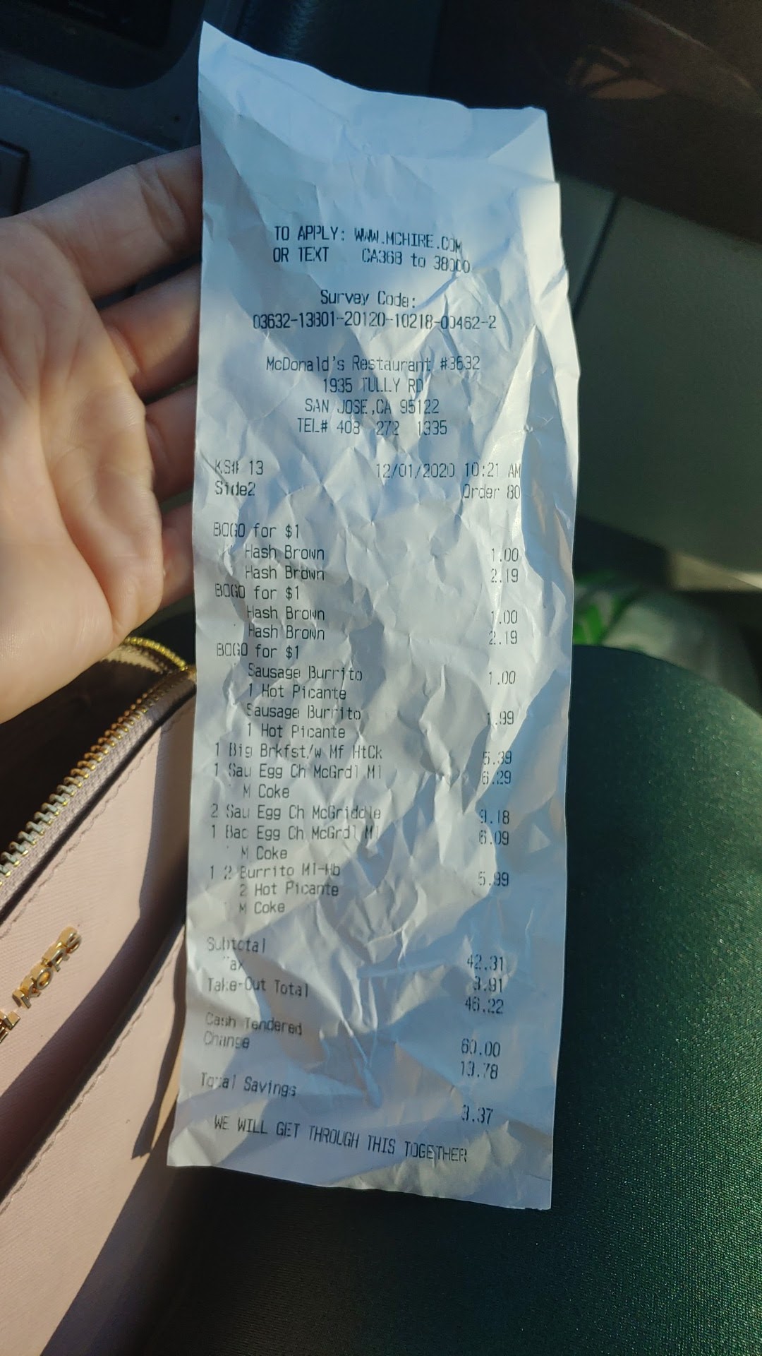 Read moreIncredibly rude people. I went through the drive thru. I ordered a cheeseburger combo that comes with 2 cheeseburgers, 2 medium fries, 20 piece chicken nuggets. I also ordered a big mac meal as well as a quarter pounder meal. I ordered barbecue and sweet and sour sauce. This in total cost me $31.86. When I received my food, I proceeded to check if my order was correct. I saw that I had not received my sauces. My barbecue sauce and sweet and sour sauce were missing. I told the person that i was missing my sauces. The person said there were plenty. So i double checked and THERE WERE NONE. I was about to tell them that I had none again, the person shoved 2 sweet and sour sauces into my hand. I took the sauces and they pushed me to go forward. They rudely gave me sauce and yelled at me to move forward or more out the way. I got home and wasn’t pleased with how i was treated. My family was waiting at home for the food and when they unboxed the food, there were things missing. The 20 piece chicken nuggets were missing as well as one of the medium fries. Wow this place sucks. Not only did they rush me through the drive thru, they didn’t even give me enough food. I tried calling them to tell them about it and they didn’t pick up. Shouldn’t they make sure all the food is given to me? Amazing service...wow. Being mcdonald’s clown is being lived up to. I don’t recommend this place at all. I’d rate this place 0 stars but there isn’t an option for...
