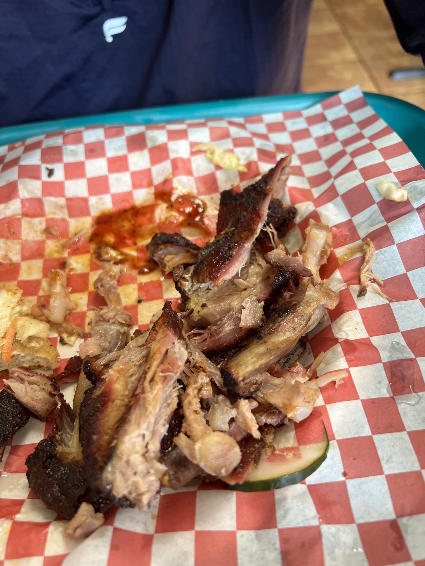 Pork Ribs - These are not as tender, and they have a chew. But that's exactly how I like them! Super-tender, fall-apart ribs can be mushy and cloying. Not these. They're perfectly cooked. They're pull-off-the-bone as opposed to fall-off-the-bone. As far as taste is concerned, it's clear they use a more complex rub with the ribs that has a touch of sugar as there is a hint of sweetness, but only a hint, and that's awesome!