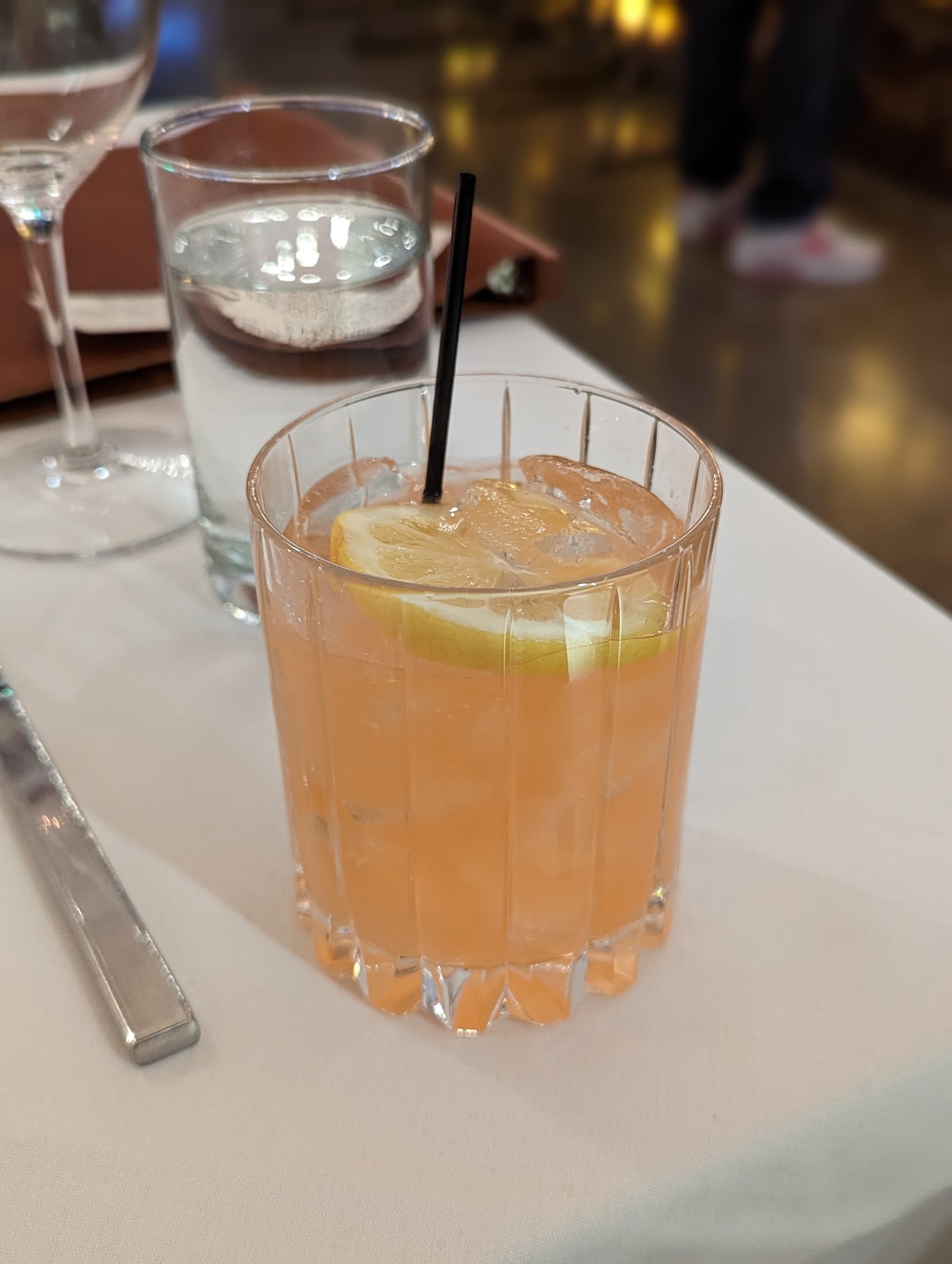 Atmosphere in the bright main dining area is dominated by the stunning large marble bar. May be a fun place to watch a sports event with friends or enjoy a solo meal. It was a quiet Sunday evening so not crowded or too noisy. But I noticed another dining area off to one side that may be quieter when the restaurant is crowded (not in use that evening). And there is a small private dining room in the rear corner. The chairs at the tables were very nice and comfortable, padded on both seat and back.