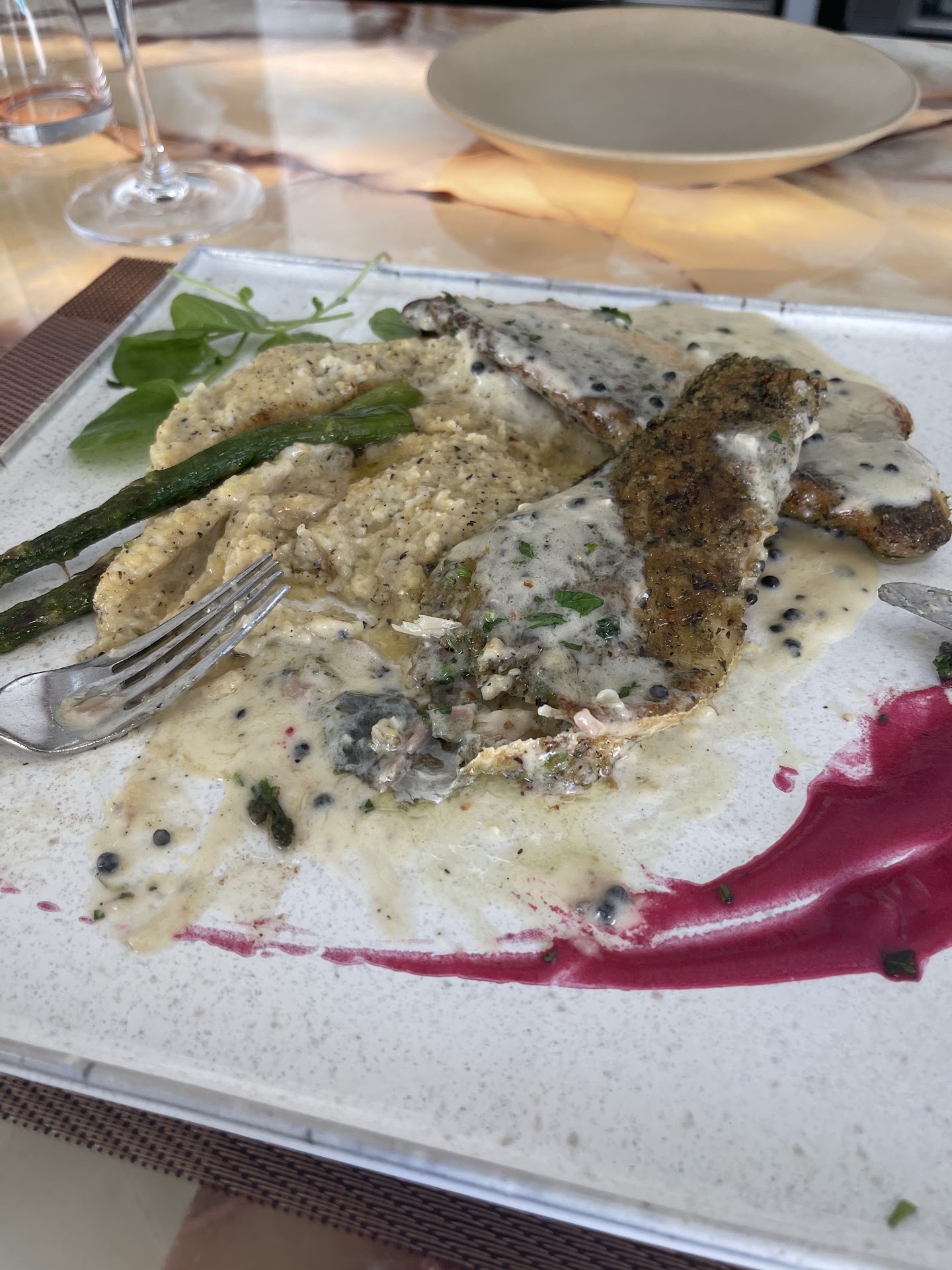 To accompany our meal, we relied on the sommelier's recommendation - a robust, full-bodied Barolo that paired harmoniously with our dishes, enhancing the dining experience further.