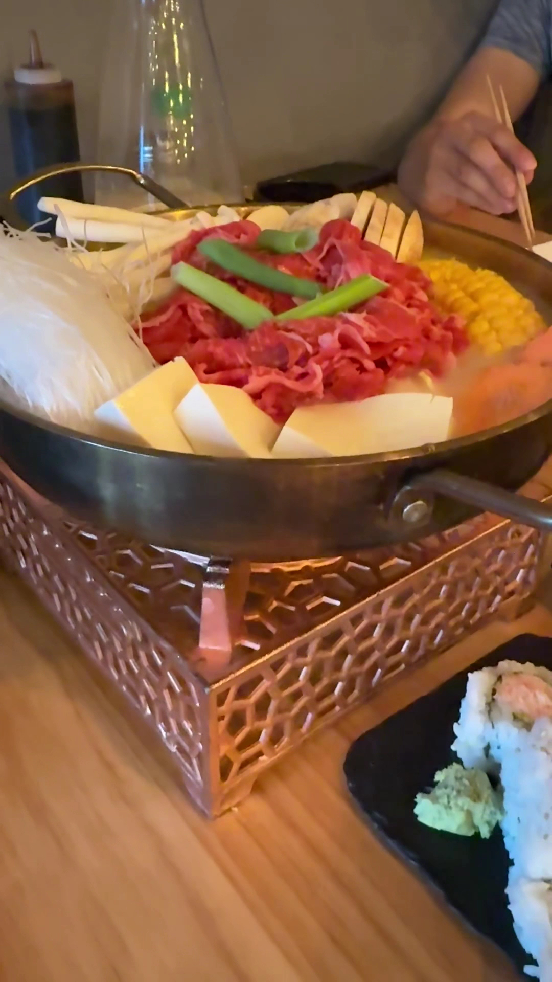 May 2025 update: Tried something new this time. It’s a hot pot. With beef, mushrooms, tofu, glass noodles, and veggies. I really think one order is good enough for two people. But if course my eyes are bigger than my stomach, as usual, and ordered California roll and hamachi nigiri. And then I was FULL!