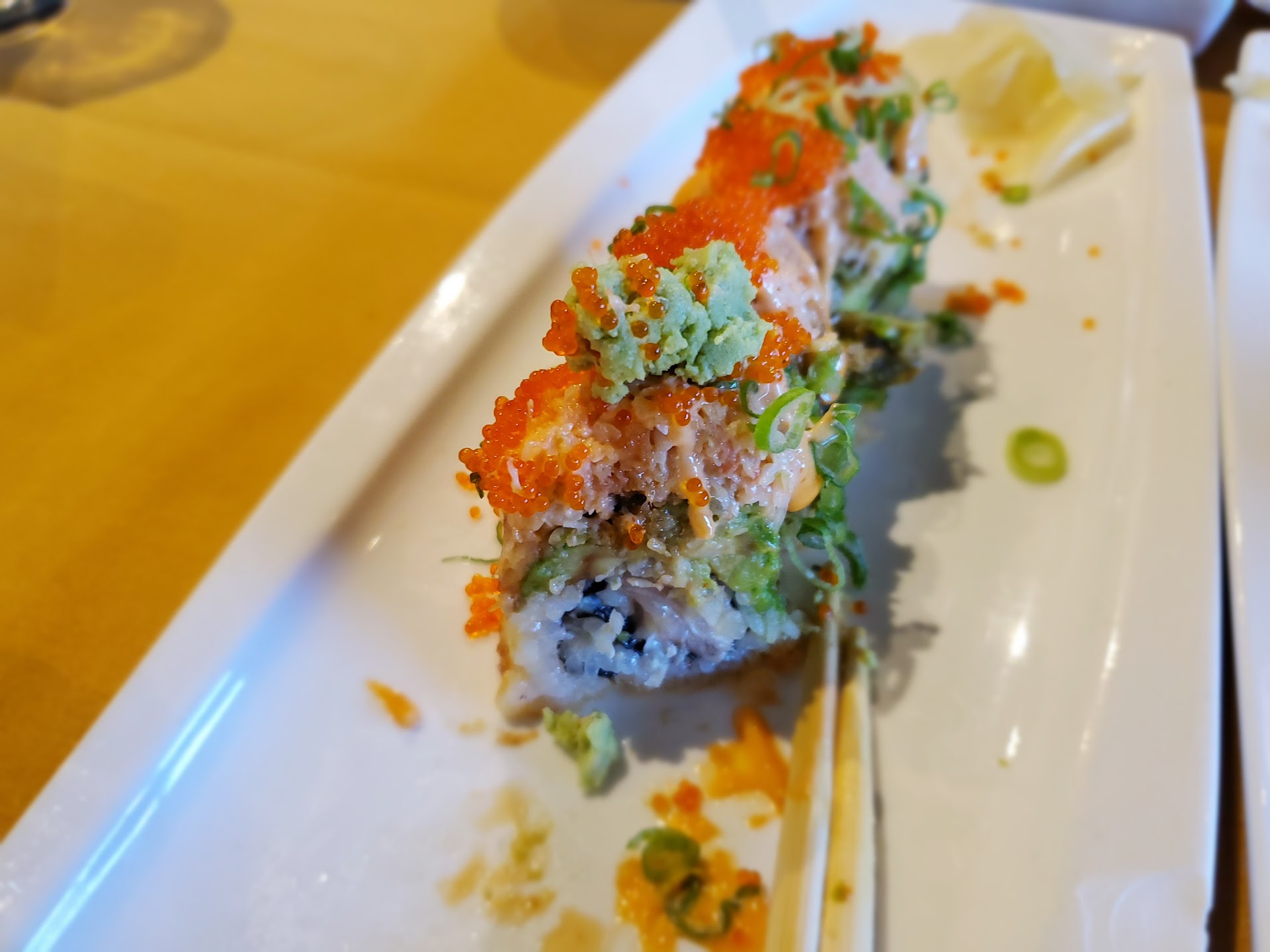 Read moreWe were eager to try a sushi restaurant that was rated so highly on YELP. The sushi rolls and appetizers turned out to be average. The rolls like Crazy Dragon had too many ingredients that all meshed together without a harmonious balance. The Yellowtail Tartar was the favorite with fresh tasting fish and a hint of spiciness from the jalapeno. The Crispy Rice with Spicy Tuna was too crispy and dry. The Bento Box with Salmon Teriyaki and Beef Teriyaki looked promising despite a 30 minute wait for it to come out. The beef was too tough and the salmon didn’t taste fresh. Aside from the mediocre food, the cleanliness of the restaurant was not up to par. After drinking all the water, I noticed a white powdered film all around the rim of the glass. We had to flag down the waiter to complain. He was apologetic and offered us a complimentary dessert. He seemed too busy to check up on us so service was less than average. We also ordered a California Roll to go. As we exited the door, one of the members of the party mentioned that the hostess asked if he had paid for the item. I immediately went back into the restaurant to let her know that she needed to polish up on her hostess and customer service skills. She was obviously inexperienced by even asking such a question --- we had just paid for our main meals of rolls that weren’t exactly inexpensive--- why would we walk out without paying for a $5 item? She offered a naïve explanation that she didn’t see the receipt at the desk. I was patient enough to provide a 15 second training that signed credit card receipts may not immediately be taken to the hostess desk. As a result of the lackluster food, dirty glass and poor service, I would have given this a one star but the waiter did try to remedy the dirty...