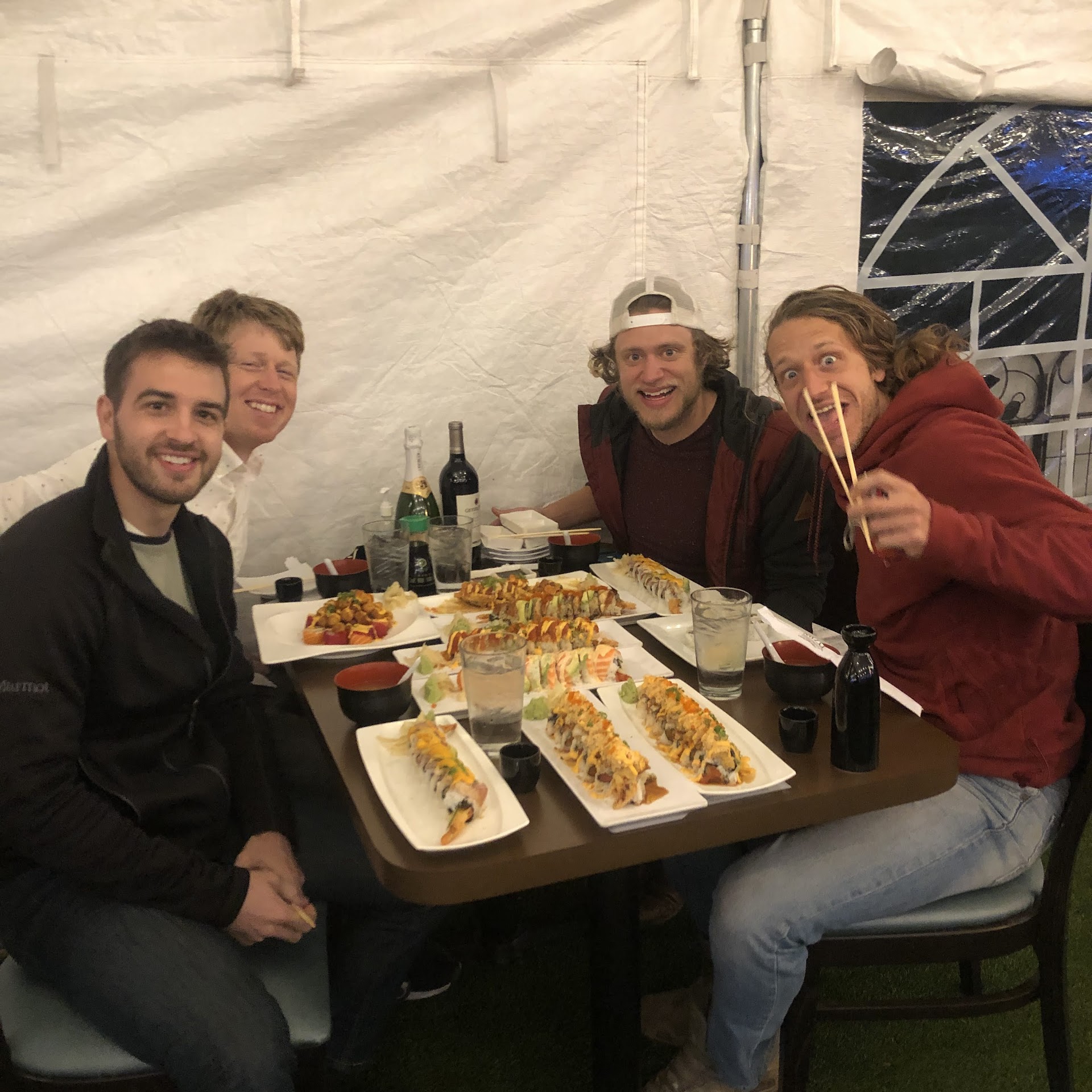$3 Sushi rolls: spicy tuna, spicy salmon, salmon skin, shrimp tempura hand roll, and vegetarian hand roll.