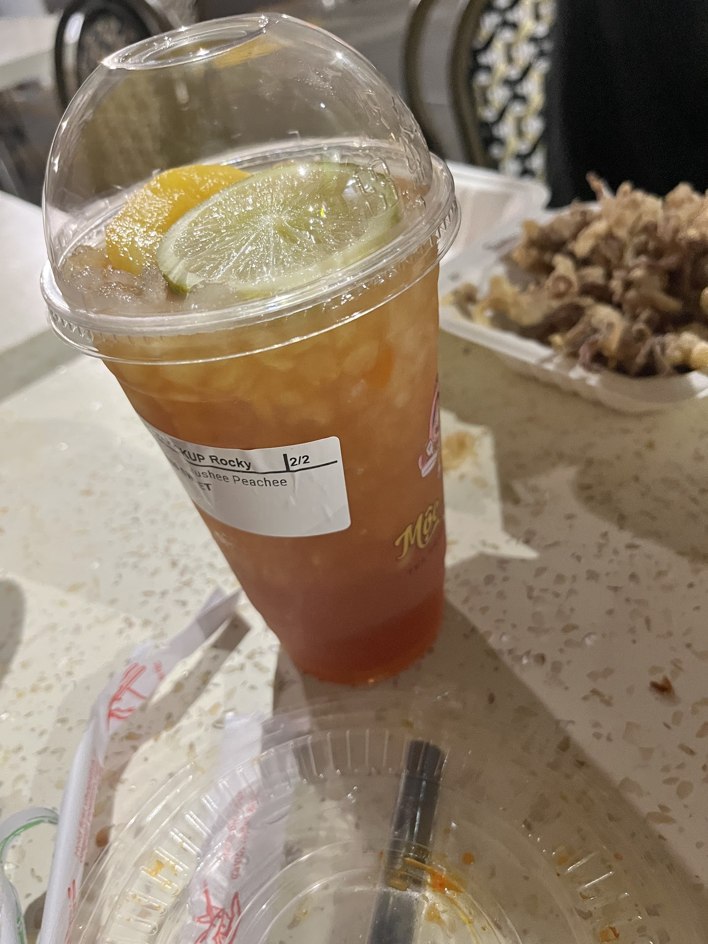They were out of the food and drink we wanted to try. (Chamango, Lemon Pepper and Cajun Fries). Ordered Starboy, Sunset Peach, Curly fries, and garlic noodles instead. Noodles were oily and no garlic flavor (I would like to add points for the chunks of scallions in the noodles though). The curly fries were also oily, and had no flavor. Considering the cost (9.9$ for garlic noodles and 5$ for curly fries) very disappointed.