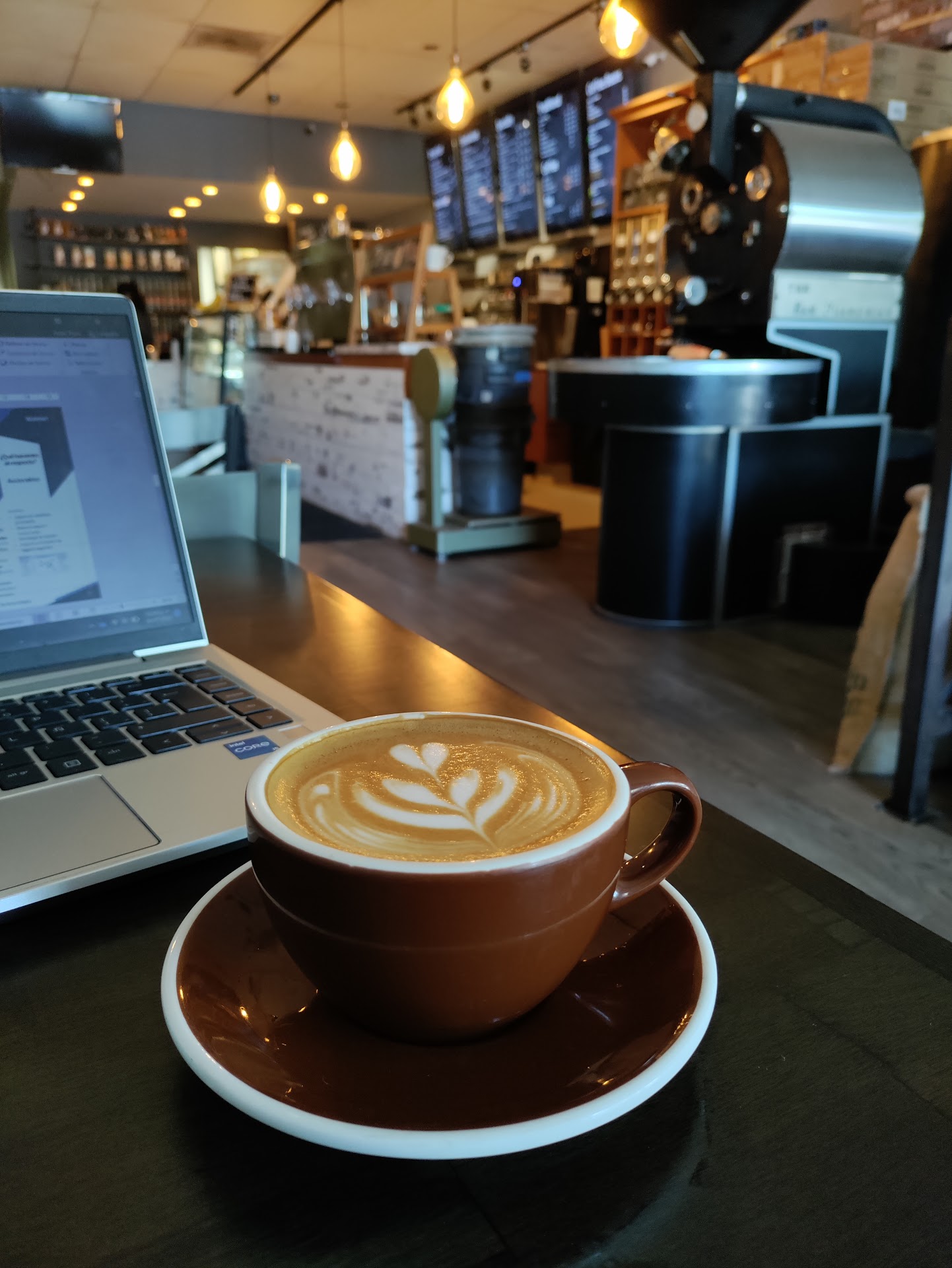 Read more[the coffee] Great local coffee shop, using freshly roasted and grinded coffee beans. I had a flat white and it was on point, nice coffee art, great flavor which was not at all overpowered by the milk (5/5).
