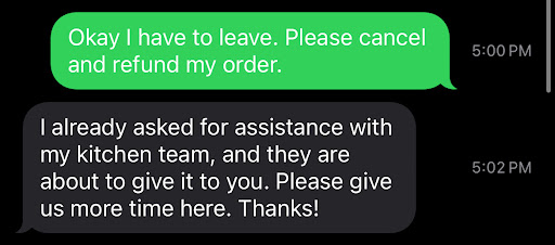 Read moreI ordered from here because the app said it would be ready in like 10 minutes. It wasn't. 30 minutes later I contacted customer service, which was slow to respond. I had to leave to teach a class, but they txted me after I left and said the staff was delivering my food. They weren't. I left a second time. Customer service beckoned me back a second time. And a third, saying the food was ready. It never was. I finally got a txt over an hour after I placed my order saying it was ready, but I was already back at class.