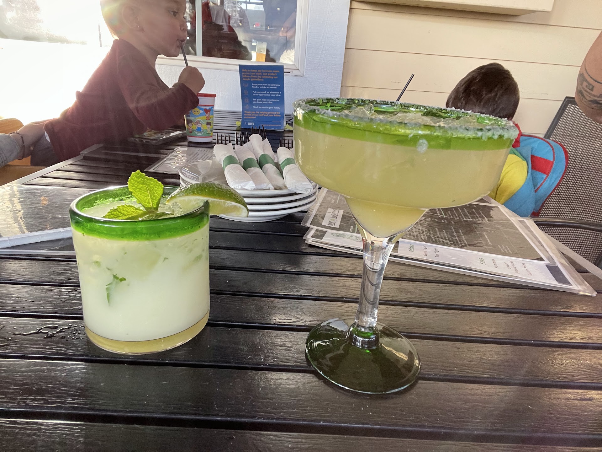 Family went for dinner with the expectations of a Mexican style restaurant, based on the name and reading the reviews. We were greeted and seated quickly. The were blasting Mexican music, a little loud for a family wanting to talk to each other. Service was initially good, waiter showed up promptly with menus. Looking over the menu, it turns out that their are some Mexican style dishes, but there is mostly other types of cuisines. First item is Wings, with Asian Zing, later in the same section is Hummus. In the salad section are all none Mexican salads, unless you consider Cesar's Mexican. Instead there are Greek salad, Louie Salad, Cobb Salad, etc. One section is called Pastas Y Mas. When a section if called Pasta and more, I expect it to be a pasta section with several pastas and then a few other items. Instead there is Spaghetti and Meatballs as the only pasta, plenty of burgers and Ribs in the section. When I attended the Culinary Academy in the 1990's, the first thing that was brought up, was to have a cohesive menu, not a bunch of different cuisines thrown together. We learned to present a menu that makes sense for the style of restaurant you are creating. This restaurant's menu seem to be created by someone that has little to none understanding of how to create an attractive menu and cuisine. I ordered a Mojito, expecting something special since Mojito is part of the restaurant's name. There was nothing special at all, actually I have had much, much better Mojitos in regular restaurants. My wife had a Margarita, which she liked. We ordered an appetizer, Mr Mojito's sampler platter. We got wings, flautas, Nachos, and Quesadilla. Wings were spicy and cooked well. The flautas were not cooked very well and the filling was almost a paste of meat. Nachos and quesadilla's were not something worth mentioning. My wife ordered a Tortilla Soup, which was the best thing that we got. Service was ok until after we got our food. After they check on us once, we did not see them until it was time to get the check. We were not asked if we wanted any additional drinks or refills for the kids. We have wave down the waiter to get water that we had asked for. Even the check took a long time to come. I don't like to write negative reviews, but in this case I really felt that I had to document our experience. With so many good restaurant's in the area, we will not come back for drinks or food. The place has so much potential, but it feel very short of our...