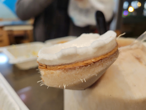 I got A plate of Hawaiian BBQ mix (which is a mix of beef, pork and chicken). It comes with rice & macaroni salad. It's pretty good. I like the flavors of all the meat. I like pork most, then chicken then beef. I like cabbage too but I wish it has less oil. A side of salad: I like the dressing that comes with the salad, helps balance the meal. Young coconut: decent. You can't use the plastic spoon to scoop out the meat but if you go home and use a silver spoon, you can. It looks thick but it's surprisingly not hard. It's probably still better if it's a little bit thinner though.