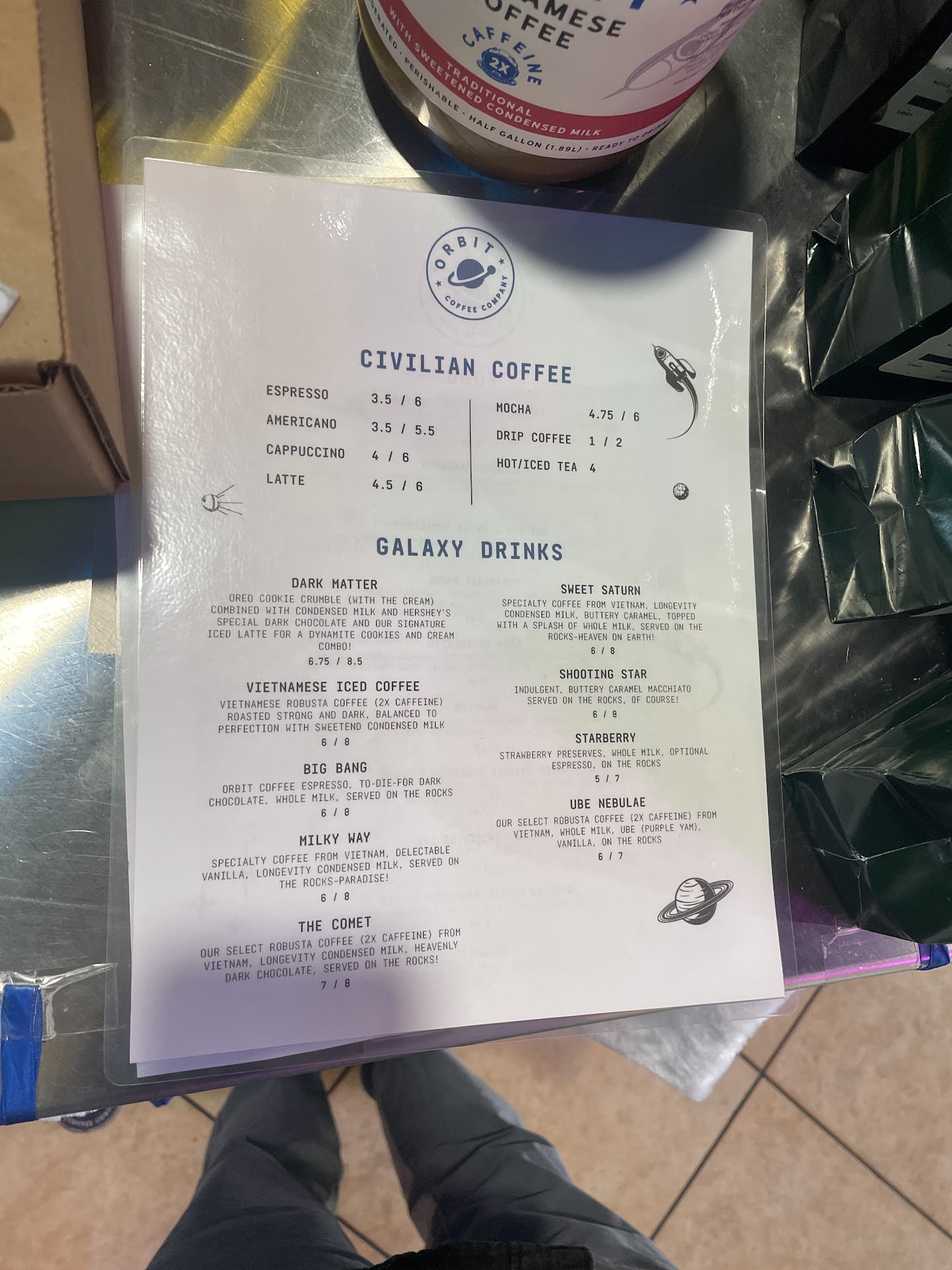 They informed me that they have decaf espresso beans when we inquired about non-caffeinated options. PSA for those who like drinking anti-matter, such as my significant other. He was going to try the decaf Oreo Dark Matter but then they realized they were out of decaf as well as two other things that weren’t relevant to us but the people behind us complained.