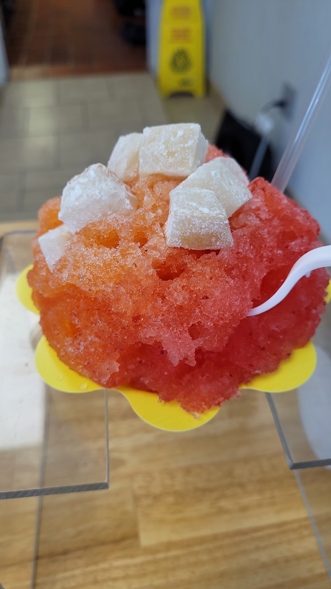 Read moreWalked over during the SJ Obon Festival to a decent line out the door but it went by fairly quick! Bought 2 smalls, one with rainbow (cashier said their rainbow is banana / strawberry / blue raspberry) and another with li hing mui / POG, both with vanilla ice cream, condensed milk, and mochi.