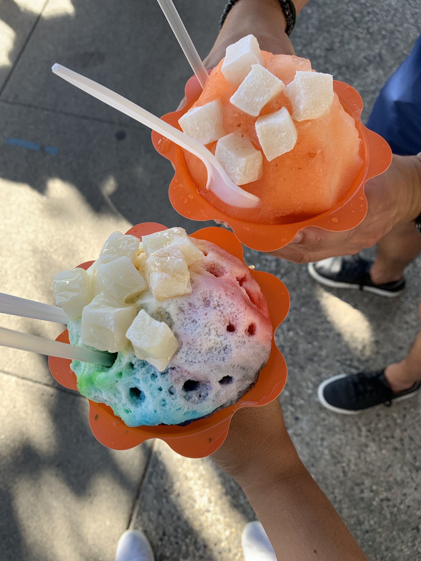 My partner was born and raised on O’ahu around the corner from a Waiola’s and said this was the best, softest shave ice he’s ever had on the mainland! The li hing mui and banana flavors were especially tasty. The rainbow had an odd taste when it melted together at the bottom though so next time I’ll probably opt for a custom flavor combination. It was great to see the mochi placed on top instead of at the bottom with the ice cream, it stayed soft this way. However the cups are flat-rimmed, not bowl-like so as we walked somewhere less crowded to eat and the ice melted, it dripped and a mochi cube fell off. My advice? Push the mochi down into the ice or by the rim and hold the cup out so as not to stain your shoes (if you’re wearing fabric ones like I was).