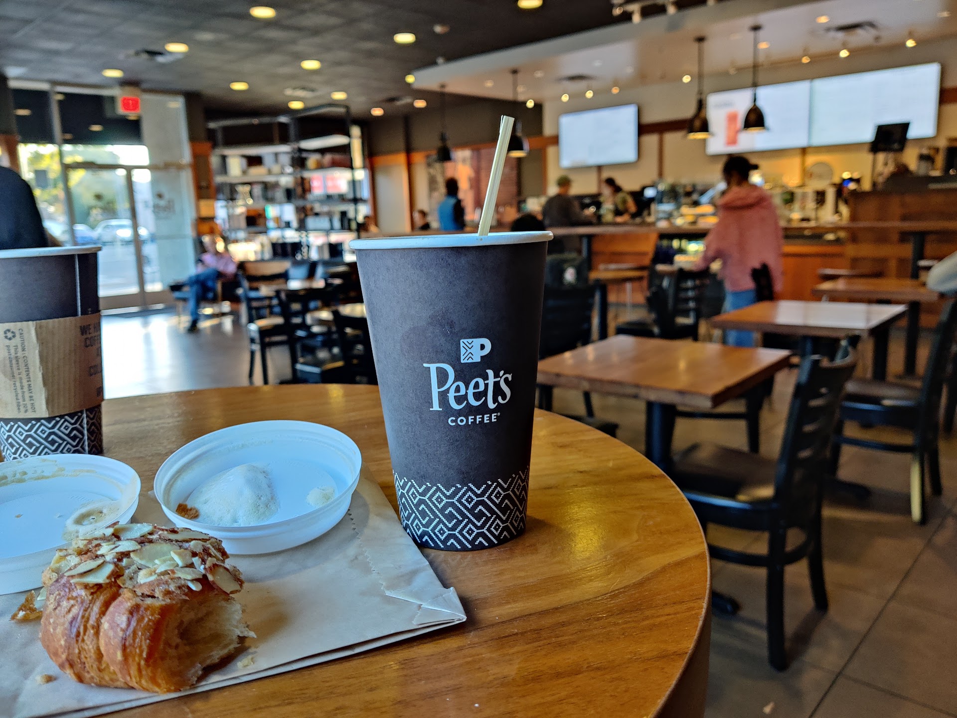 HOWEVER, Peets does not vet those who come into the store. Sometimes you can be bulldozed by poor old single ladies and men who have nothing better to do hog your time and won't let you go. They won't let you read your book or spend your time. This is a major hassle. They are loud, go to everyone speak about conspiracy theories and waste other's time. Peet's only needs to let in buying customers and limit time of those who are simply sitting there. This is not a public...
