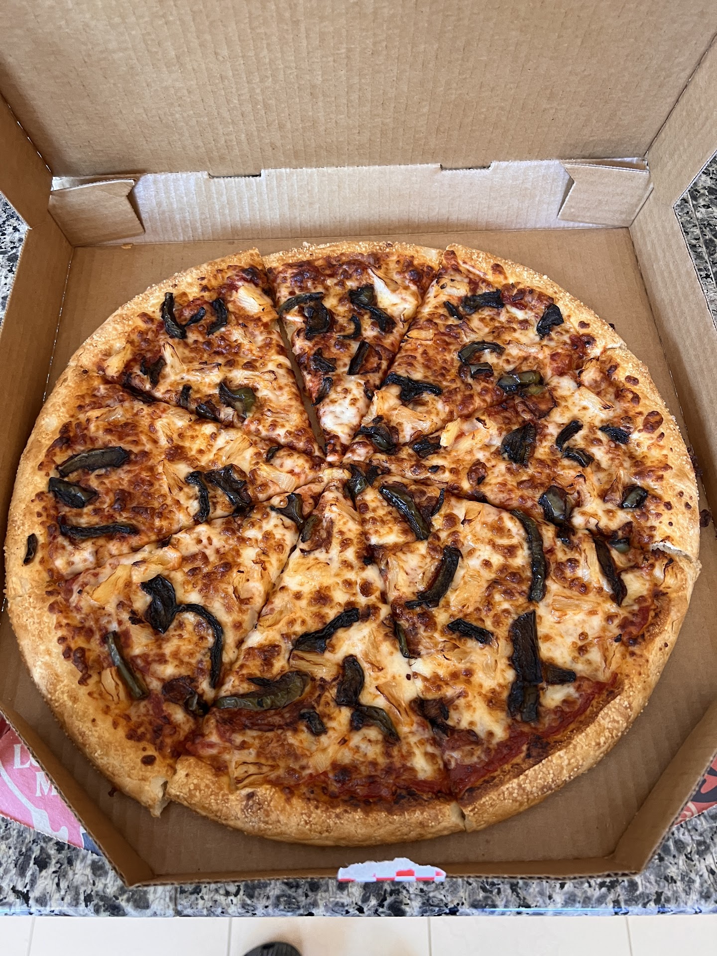 I selected black olives as one of my 5 toppings on both of my pizzas & didn't receive ANY on 1 of the pizzas.