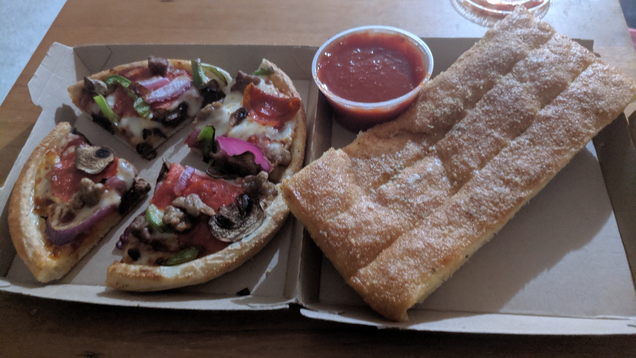 Read moreIn this time if COVID, I've ordered various meals for delivery a few times now. My first experience was unimpressive (late delivery and just-warm food--and, ordering online, the tip was already paid, so...), but the rest of the times were much better. I have no contact with anyone, of course, but the meals are never wrong (i.e., what I ordered, I get), and each tastes good, whether pizza, chicken, breadsticks, or dessert.