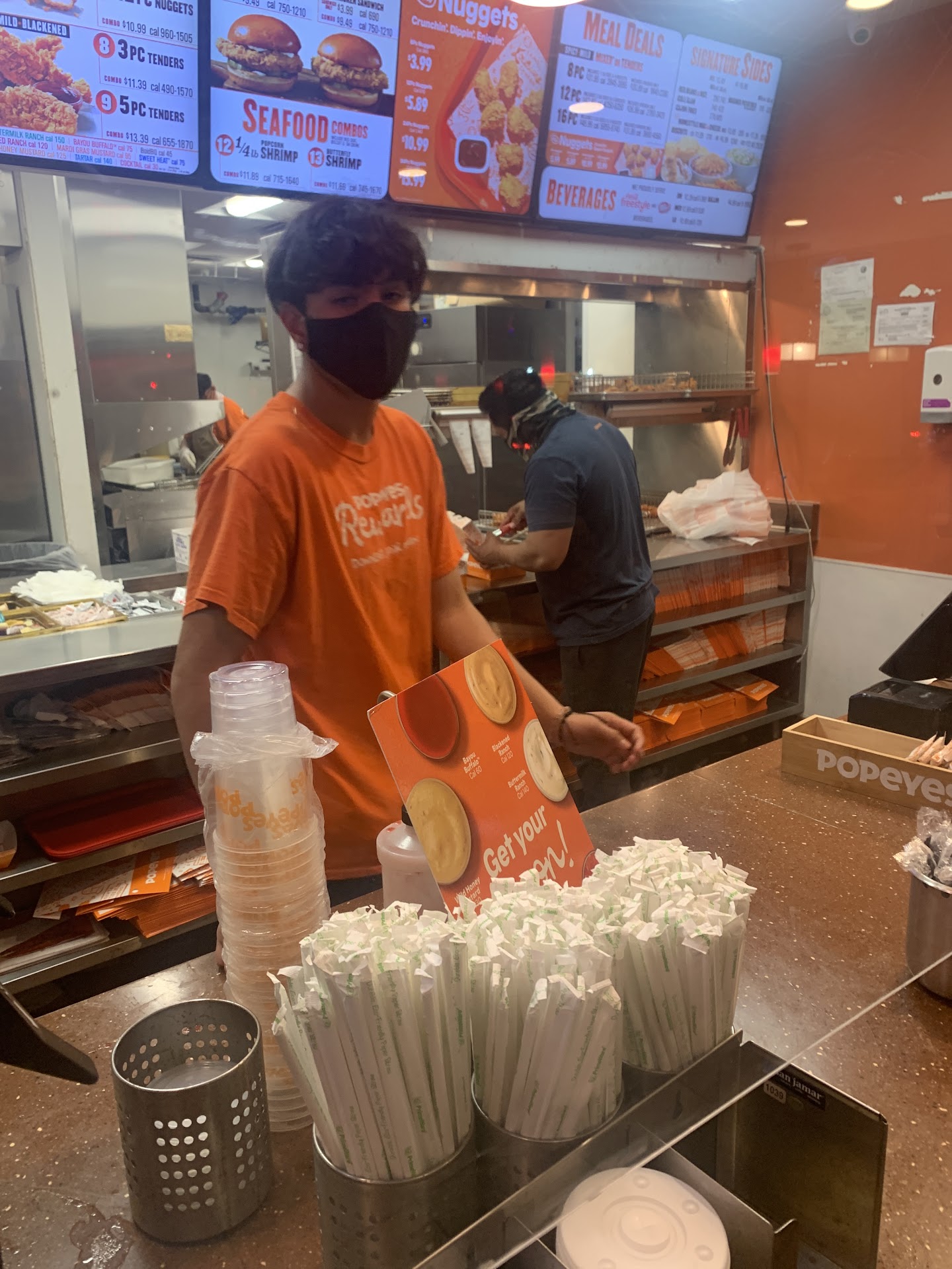 Read moreI was told many times by family and friends to try this Popeyes eatery. I finally did. I walked in and there was a ton of chicken in warmers. I wanted to order almost $20 in chicken nuggets (small chicken pieces) and fries... I asked the cashier if I can get all the food fresh. I asked him 3 different ways and he replied yes... 3 times. My order came. I checked it. Fries were cold. Felt as if they had been out for more than 15 mins. Not even lukewarm. The chicken was also cold and super extra cooked. I told a different cashier and he said... "oh I don't know, ask this other guy...then he shouts " I don't know... but she wants it fresh" and he walked away toward the back and another guy not dressed like the 2 cashiers came out. Told him the issue... that I asked and wanted fresh chicken and fries. Was told yes. "Manager" was adamant that the food was cooked fresh but refused to touch my boxed food. Kept saying he is not allowed to touch our food... He argued for 15 mins and refused to give money back. Finally after telling him that we were recommended to go there. He said... I guess I can cook u fresh food but its gonna take 10 mins... by that time, I was over the whole incident ... I asked for my money back. He slammed my money on the counter totally unprofessional. There was only 1 lady and a couple at the tables already eating. It was around 6-7pm no reason to have so much chicken or argue with customer. Manager was very rude and not professional... Unfortunately, we will not go back. Lost a Popeyes customer...