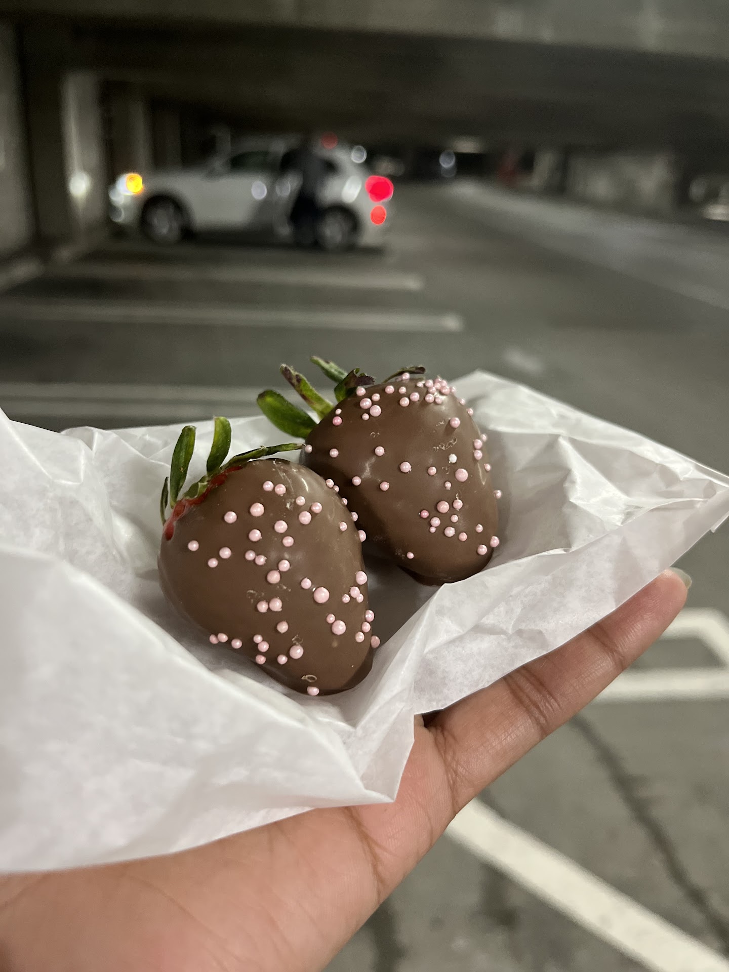 Let me just say, it was so flipping good! My taste buds were screaming. The chocolate is so smooth, so creamy, and just so thick. The sweet moist strawberry has the slightest crunch, and the chocolate quickly soothes the tongue. Add in the crunch of the pistachios, you just can't go wrong. I literally finished off the last bite and contemplated going back to order another! 😂