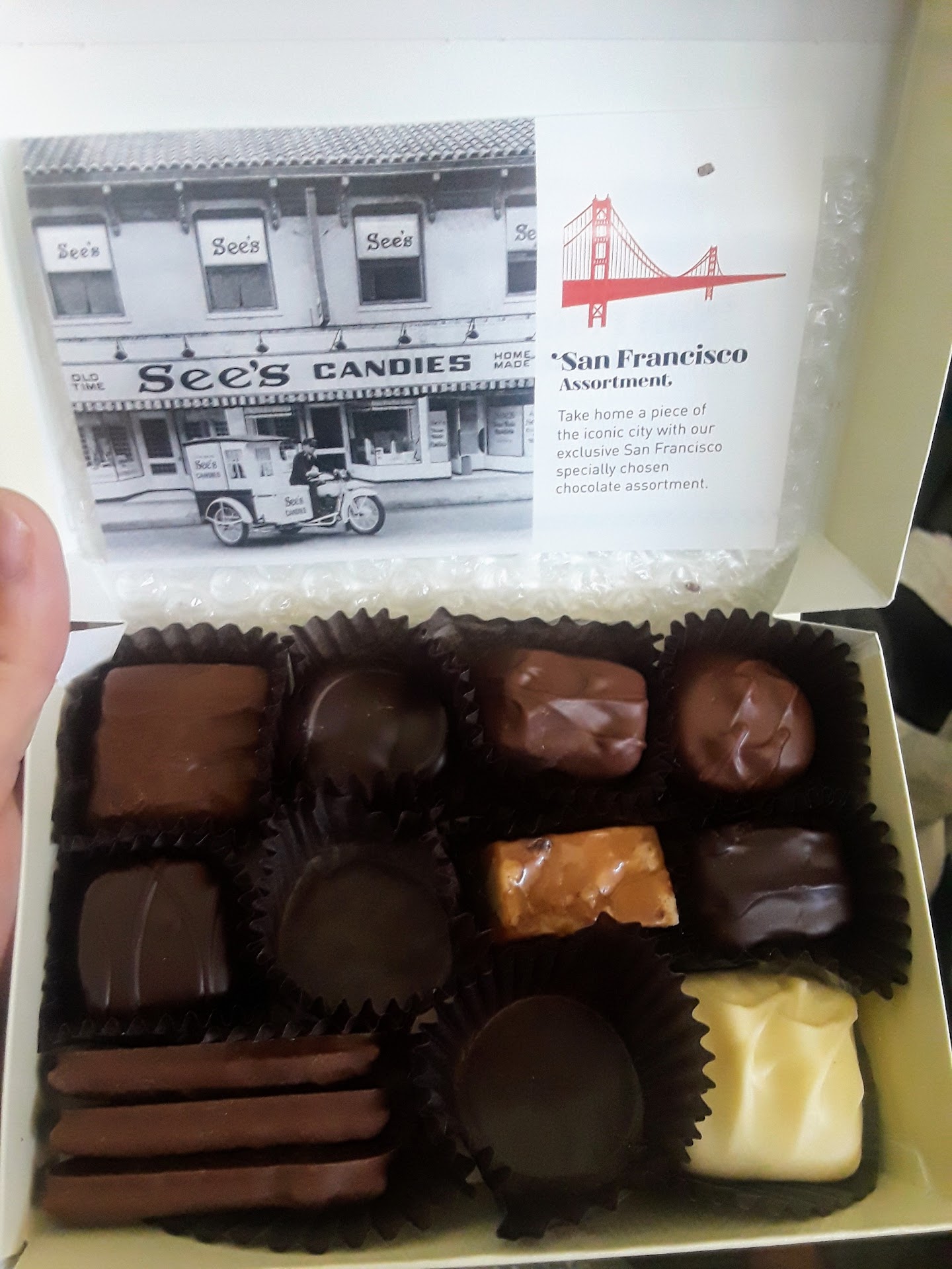 Read moreLoved the young woman who waited on me. I had a relatively complicated order - 2 1lb boxes and 1 12 piece box where I picked the mix for all 3. She was sweet and very patient and did a beautiful job wrapping all three boxes. I am rarely anywhere other than the airport in San Jose. However, with See's pretty much a straight and short stop from the airport, I may stop on my way back to the East Coast from SJC more often. I grew up on See's having lived in South San Francisco (See's Headquarters) in Jr. and Sr. High . But my California AND East Coast Godmothers are LOVE See's so whenever I am in California I a. required to buy 1 and 2 pound boxes for them both. It is my pleasure, especially when I can get great service like I did at this shop...