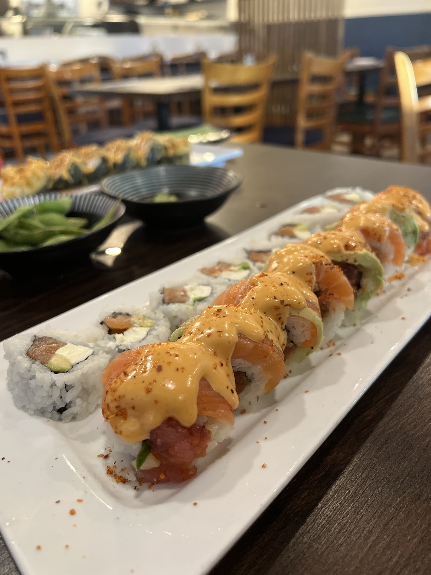 Read moreI really feel badly leaving this negative review but I think it will at least aforewarn others when they dine here. We ordered multiple sushi rolls here, most of them range between $14-$19 with a few over $23 each. While some tasted ok, they were ALL (every single roll) just drenched with so much gloopey mayonaise-based sauce it was quite disgusting and salty, actually. The fillings, the great majority of most rolls, have a central "crab" aka fake crab actually made from cheap processed pollock (common fish) base. We would not dine here again, ever. It feels like fast food "sushi". Also, the tables and the walls adjoined to the tables were dirty and splattered with soy sauce. We were grateful for single-use disposable chopsticks. However, to some palettes this type of food may be enjoyed, thus to each their own. ...