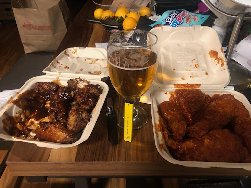 Read moreFood is ok. Price is the same as Buffalo Wild Wings but the flavor is worse here, meat is worse, and doesn't include as much as Buffalo. I tried the Parmesan Garlic (Buffalo Wild Wings has the same flavor) and it is SO dry and has SO MUCH oil on them that you can taste it. The 4 Alarm flavor was great for what it's supposed to be! It is the second to last spiciest flavor. I honestly don't like spicy and sweet but this is like spicy bbq sauce. The Spicy Garlic is good but the after taste of eating it after a piece to few pieces in not that great. That first bite is so savory, though! The only comparison that is better than Buffalo Wild Wings is the fries. The price is about the same but Smoke Eaters provides more fries. The music and atmosphere here is great and the workers were really loose, friendly and professional. Still would definitely recommend Buffalo Wild Wings...